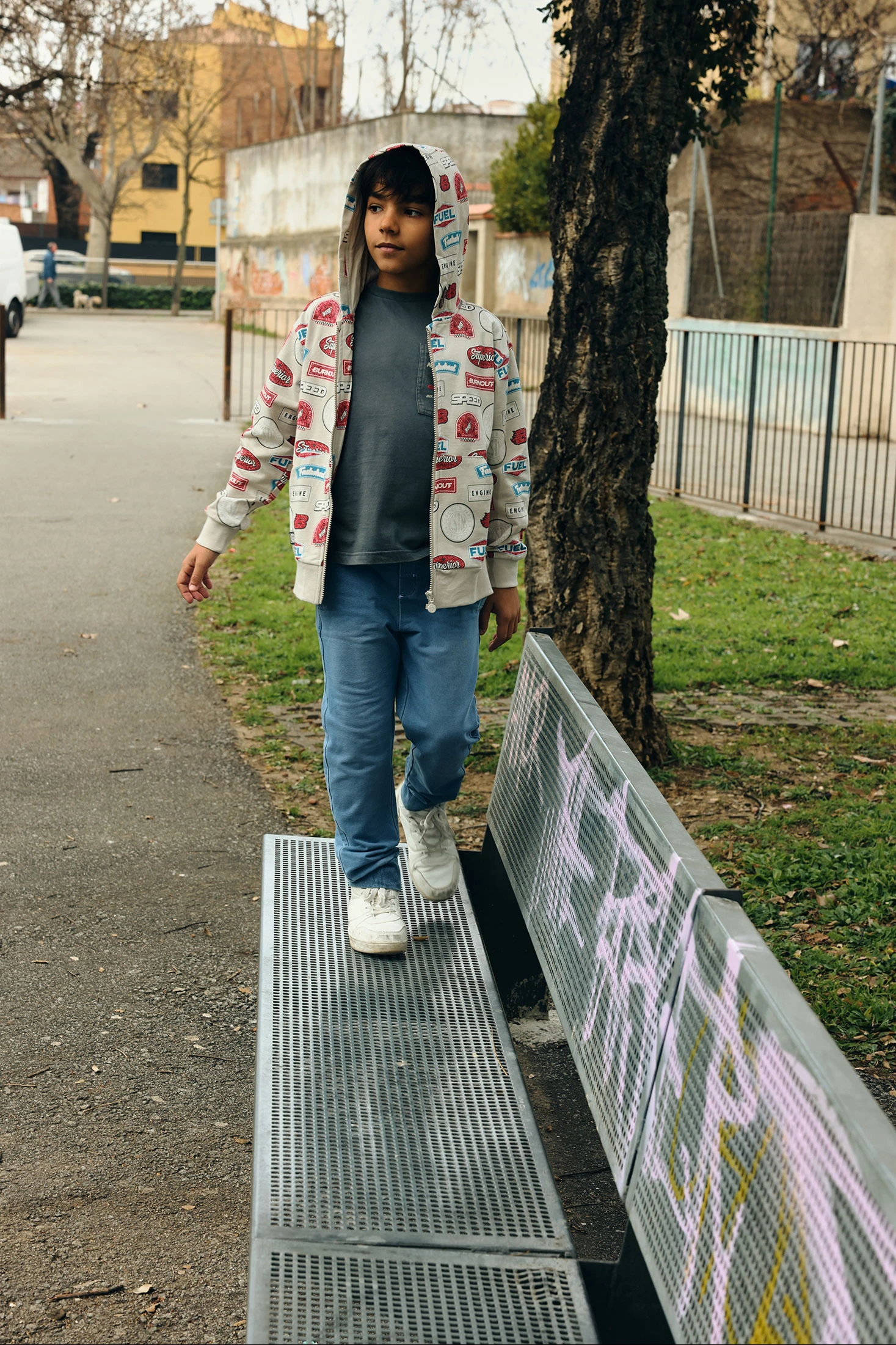 Pantaloni in felpa denim per bambino di colore bleach, con una finitura di ispirazione denim e una mano morbida. Progettati per offrire comfort nell’uso quotidiano, il tessuto elasticizzato facilita il movimento e garantisce una vestibilità confortevole. Sono realizzati in una miscela di 78% cotone, 15% poliestere e 7% elastan, che combina resistenza, flessibilità e comfort. Un capo pratico e facile da abbinare, ideale per il giorno per giorno.