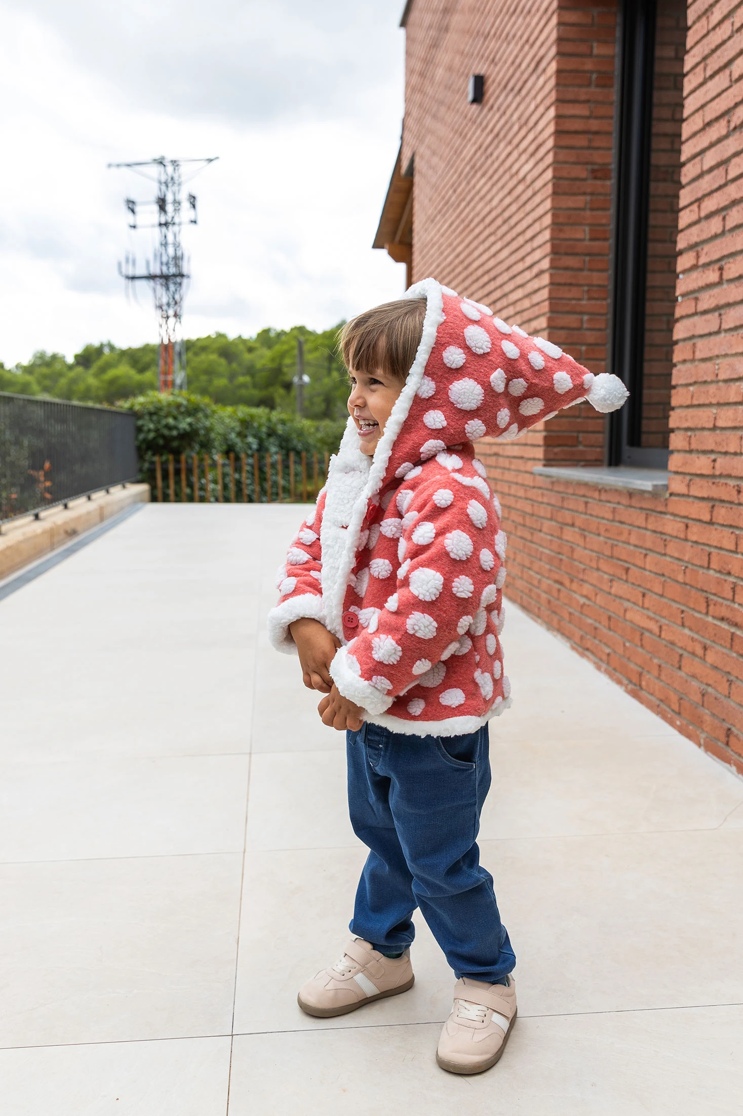 Cardigan a maglia per neonata in colore rosa, progettata per offrire morbidezza e calore nei mesi di mezza stagione. Realizzata inun tessuto morbido, fornisce un comfort eccezionale per la tua piccola. Il delicato colore rosa rende questo capo una scelta versatile che si abbina facilmente a diversi outfit per bambini. Disponibile in taglie da 1 mese a 2 anni, aggiunge un tocco di tenerezza e moda al guardaroba della tua bimba.