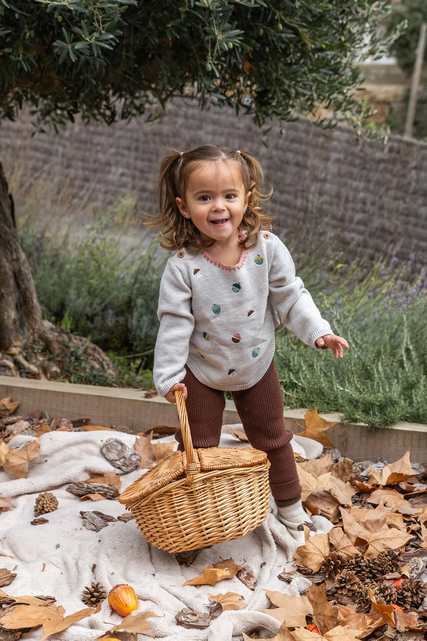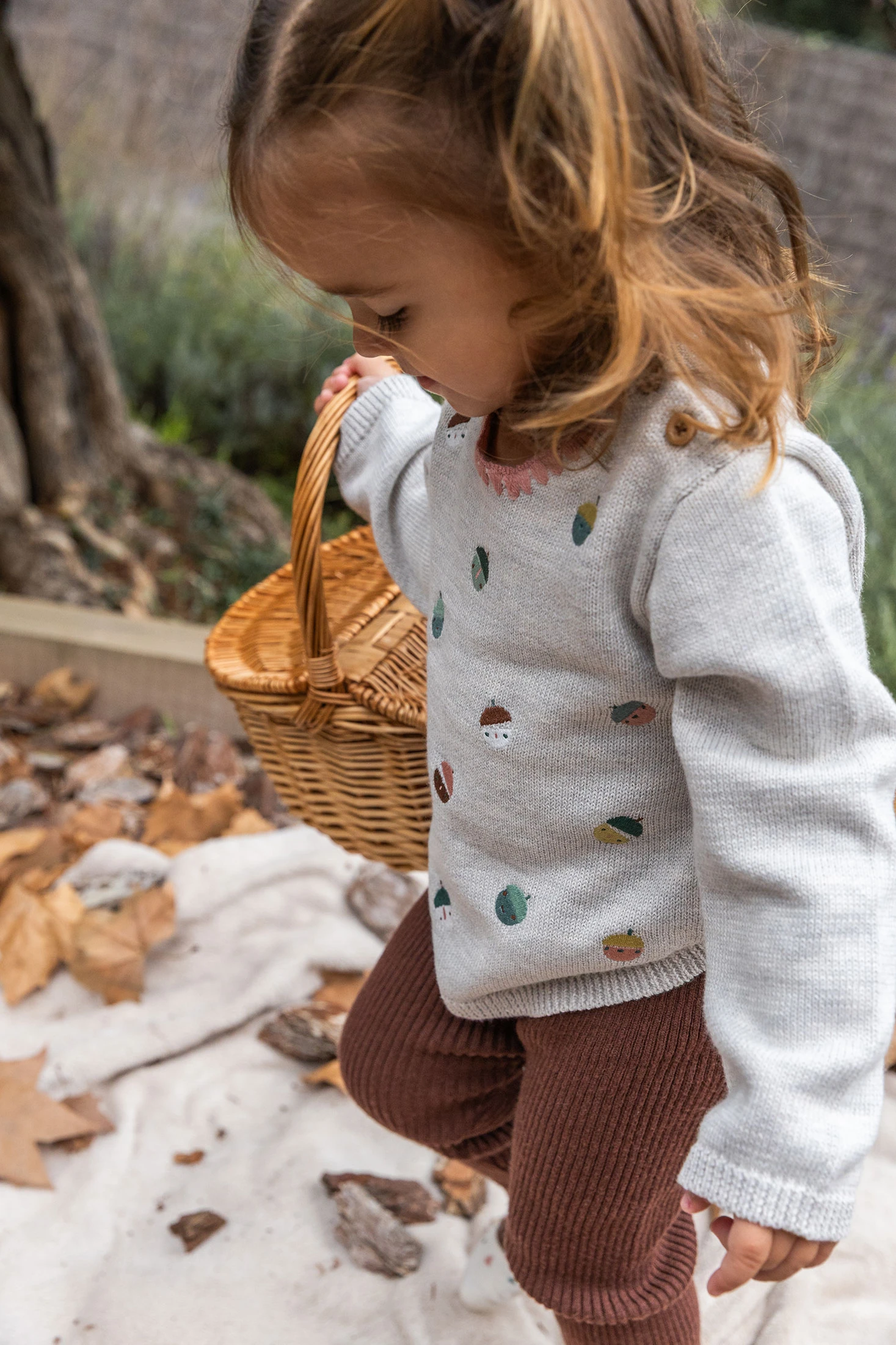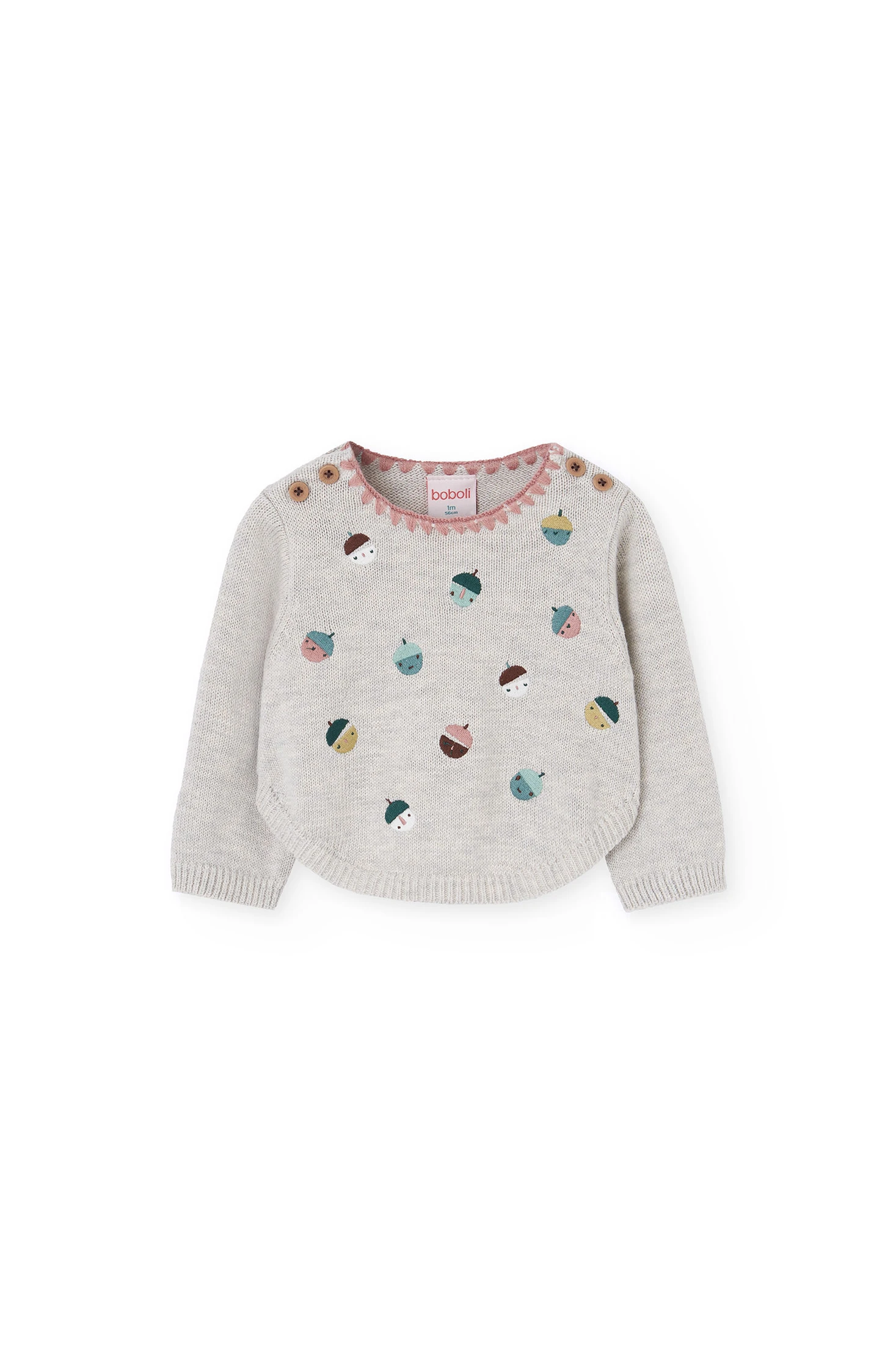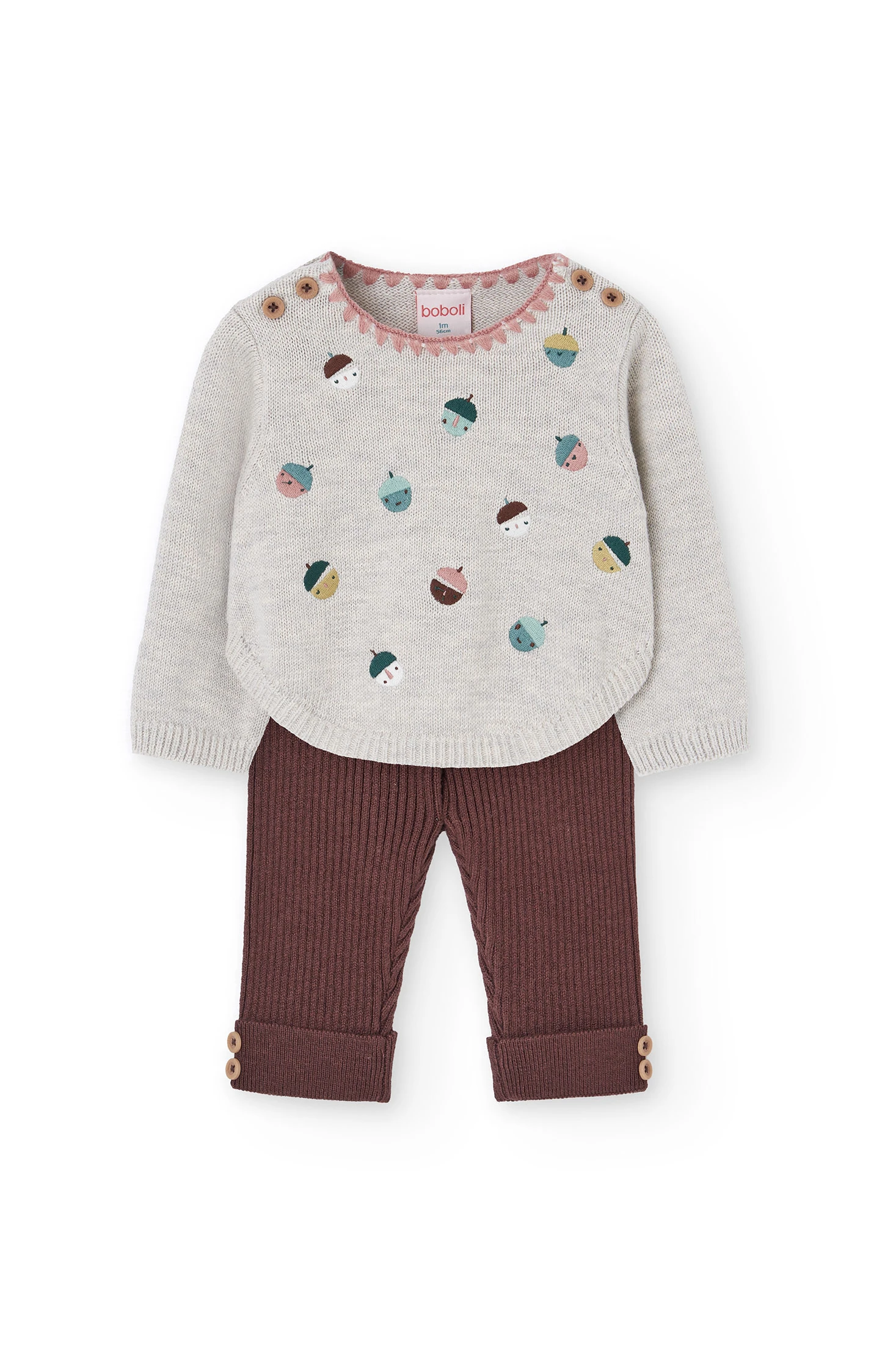 Set in maglia stampata color beige per bambina, ideale per mantenere la tua piccola calda e comoda durante i mesi autunnali e invernali. Il design include un maglione con un incantevole stampa allegra, collo rotondo e bottoni sulle spalle che consentono un cambio d'abito semplice. I pantaloni, anch'essi in colore marrone, offrono una finitura a coste che assicura ulteriore texture e comfort. Realizzato con materiali morbidi e durevoli, questo set è disponibile nelle taglie da 1 mese a 2 anni e può essere facilmente abbinato a giacche e accessori per un look completo e adorabile.