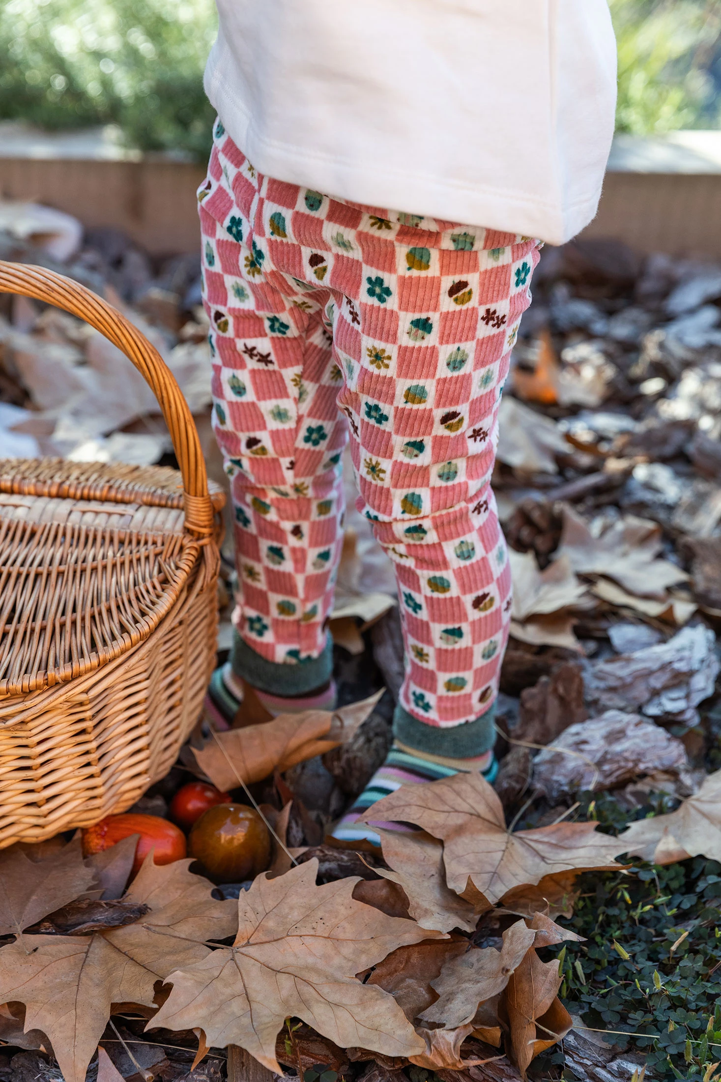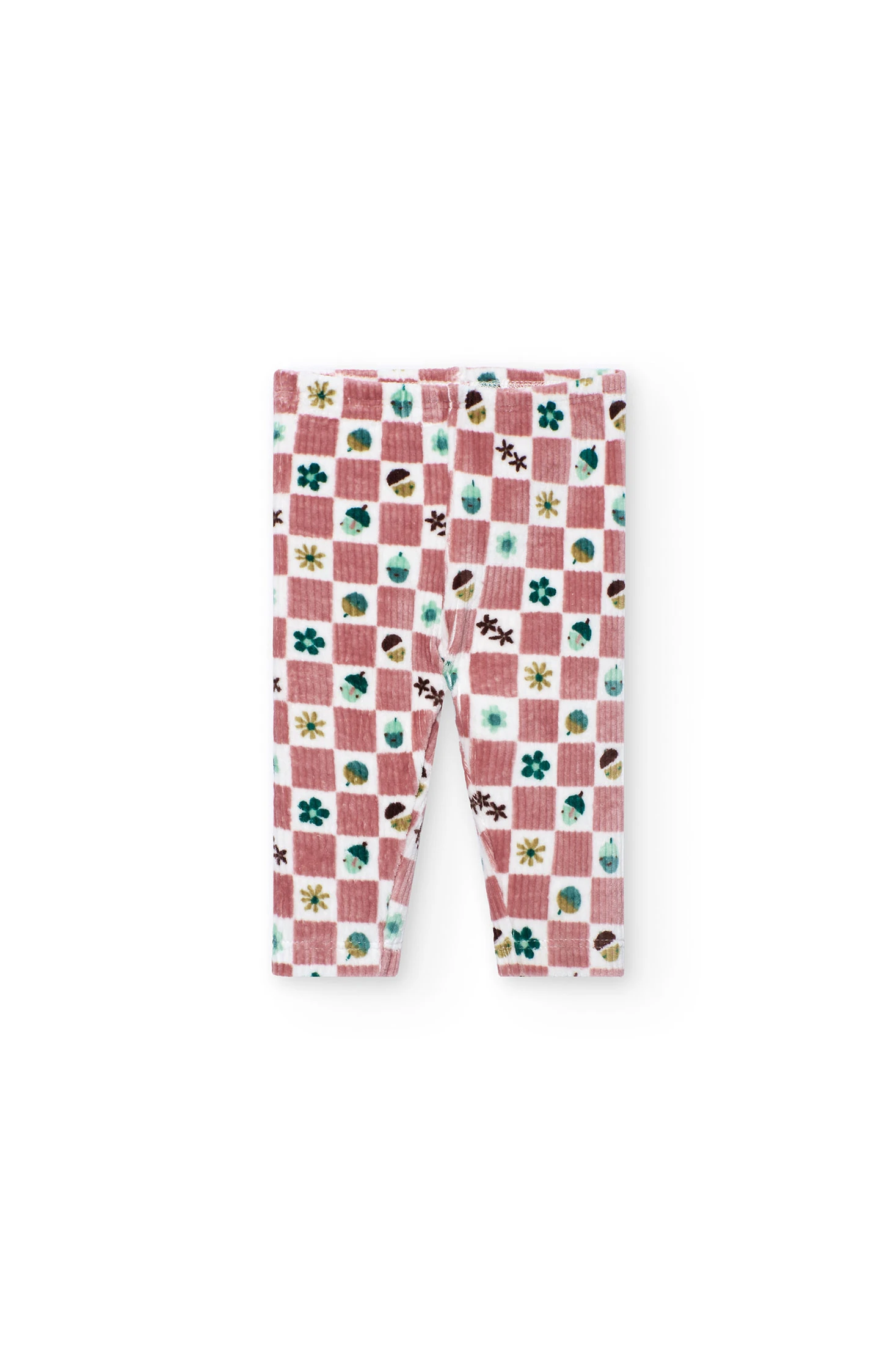 Completo per neonati disponibile nelle taglie da 1 mese a 2 anni. La parte superiore, di colore bianco, presenta un allegro design di un viso sorridente e dettagli floreali, realizzata in un tessuto morbido e confortevole. Pantaloni con stampa a quadri in tonalità rosa e marrone, decorati con motivi di fiori e foglie, aggiungono un tocco divertente. Realizzato con materiali caldi e dotato di maniche lunghe, è perfetto per tenere al caldo la tua piccola durante l'autunno e l'inverno. Ideale per tutti i giorni, combina stile e funzionalità per ogni occasione.