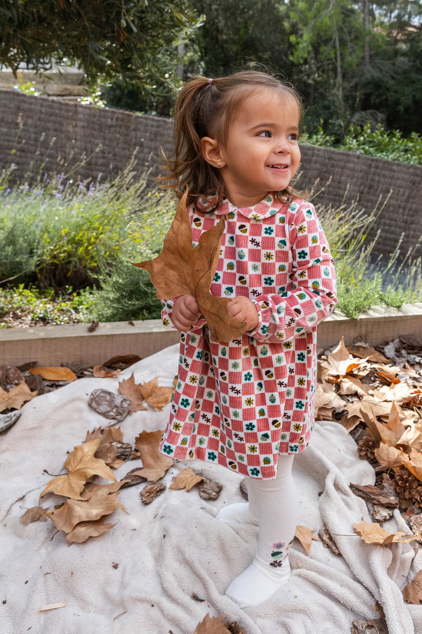 Vestito per bebè in maglia con motivo a quadri rosa, perfetto per la stagione autunnale e invernale, mantenendo la tua piccola calda e comoda. Realizzato in un materiale morbido, disponibile in taglie da 1 mese a 24 mesi. Collo rotondo con volant e maniche lunghe, presenta uno stile classico ed elegante, ideale per eventi speciali o per l'uso quotidiano. Si abbina facilmente con collant e cappotti per completare il look.