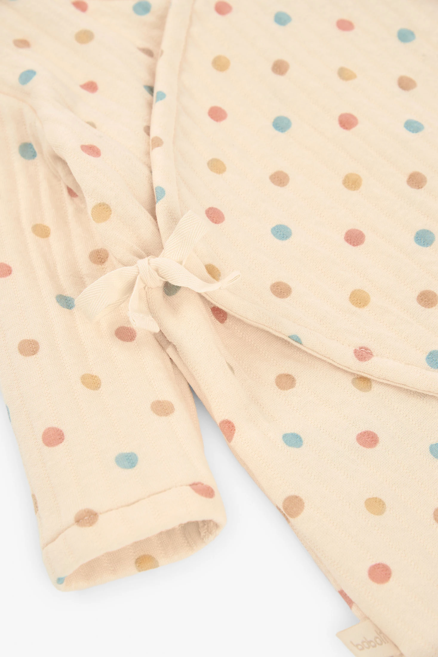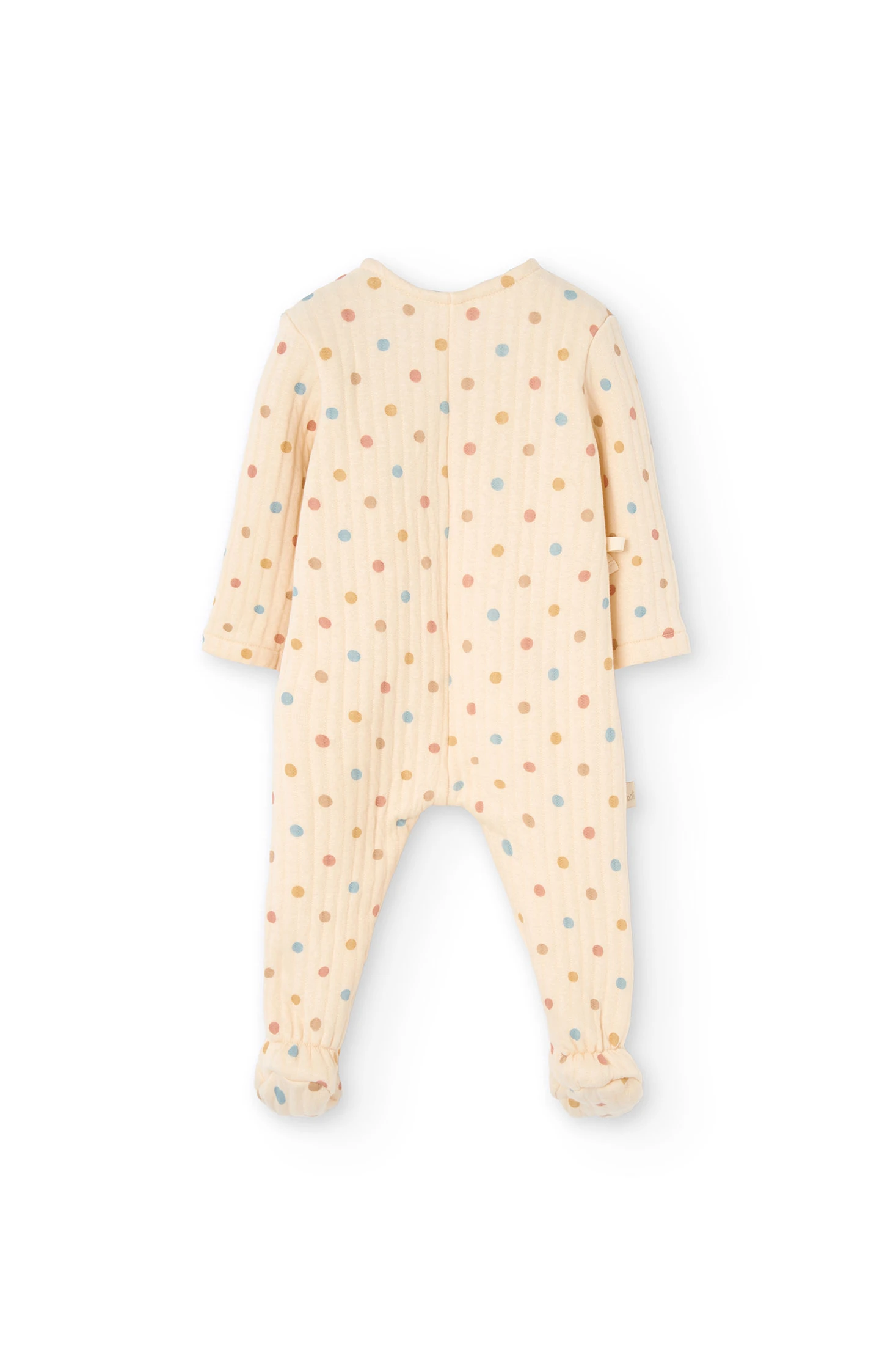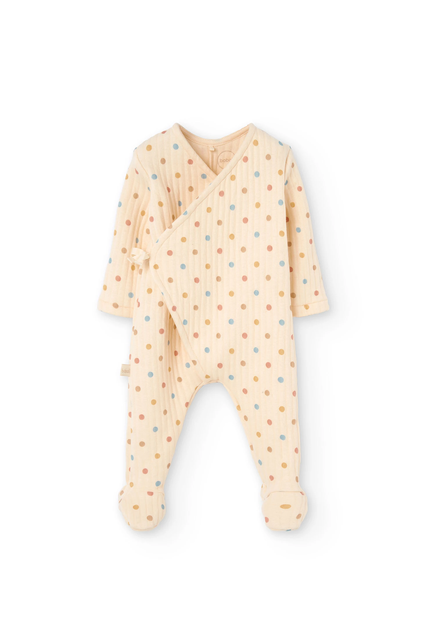 Tutina imbottita in maglia per bebé, progettata per offrire comfort e calore nei mesi più freddi dell'anno. Realizzata in morbido tessuto di cotone, garantisce una vestibilità confortevole e sicura grazie ai delicati bottoni automatici sul davanti. Disponibile in diverse taglie, è ideale per i bebé che necessitano di mobilità senza rinunciare allo stile. Il suo design imbottito non è solo accogliente, ma anche moderno, perfettamente abbinabile con una giacca leggera o una copertina per le passeggiate all'aperto. Il regalo perfetto per i neonati e un capo preferito nel guardaroba del tuo bebé