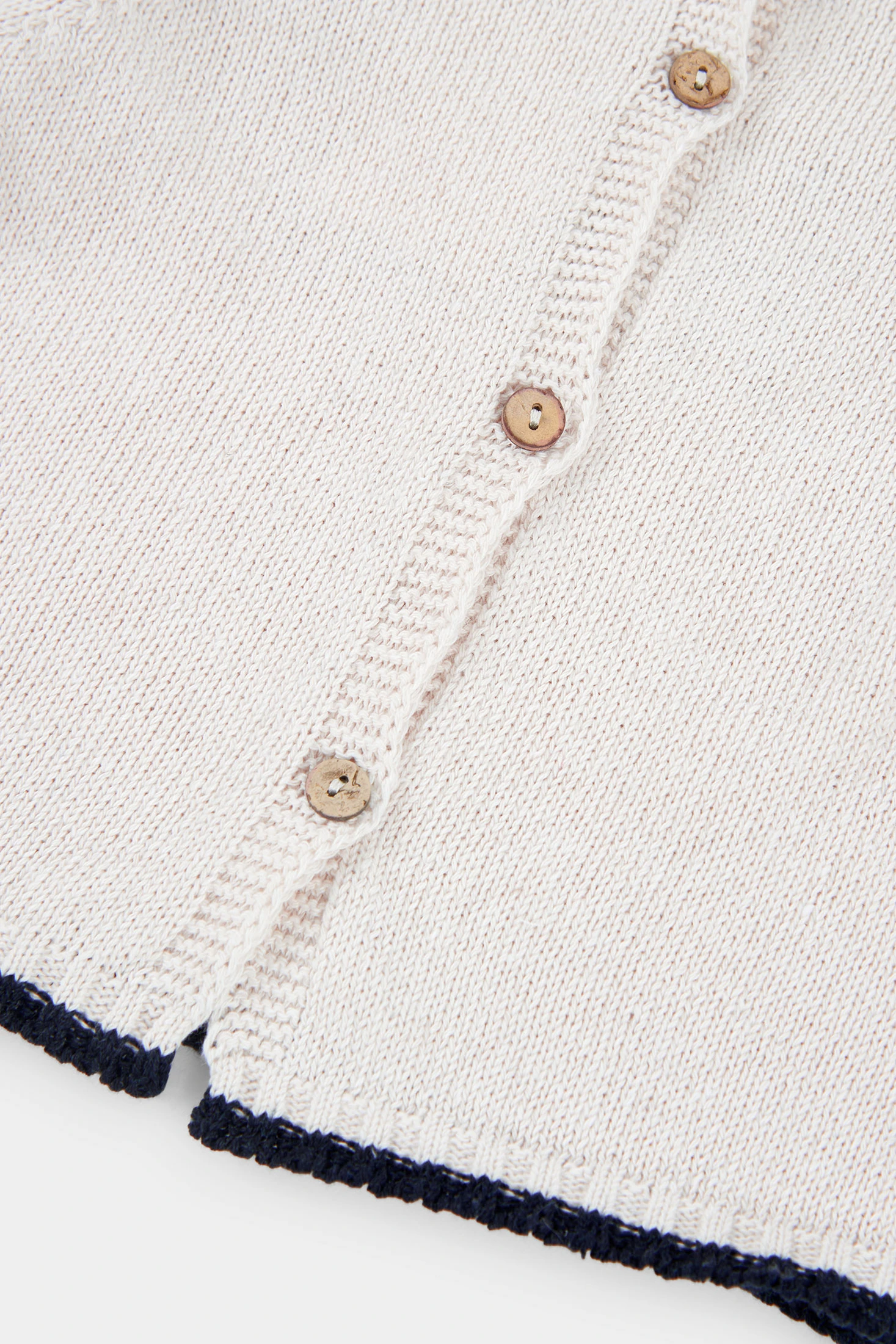 Maglione in maglia per neonato di colore bianco con stampa di lettere. Appartiene alla capsule REBORN by Boboli, una collezione realizzata con filato 100% riciclato post-consumo. Realizzato in un tessuto morbido e traspirante, offre calore e comfort durante le stagioni più fresche. Presenta scollo rotondo e bottoni sulla spalla per facilitare la vestizione. Il suo design neutro e moderno si abbina facilmente a qualsiasi capo.
