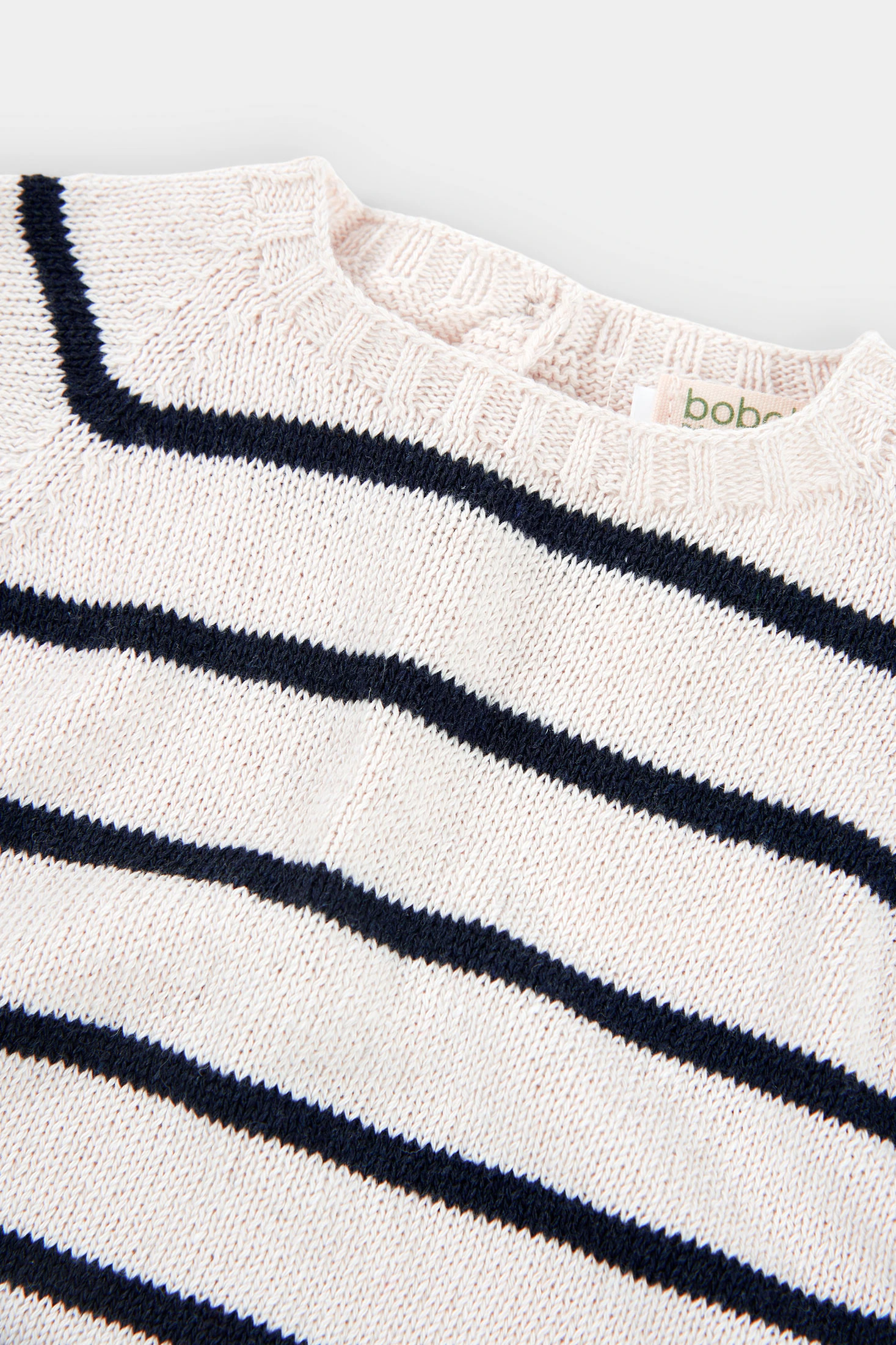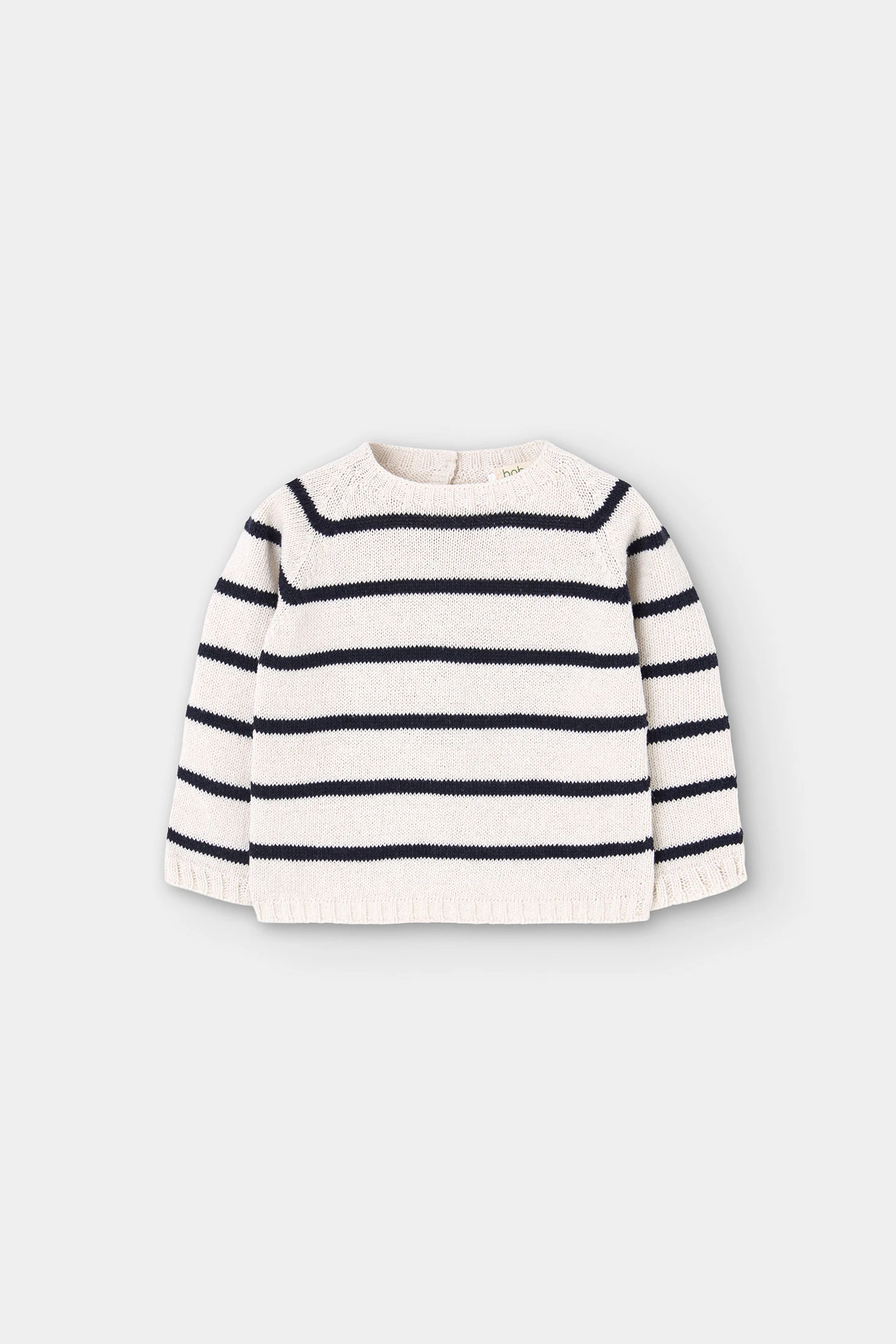 Maglione in maglia per neonato con un classico design a righe. Appartiene alla capsule REBORN by Boboli, una collezione realizzata con filato 100% riciclato post-consumo. Realizzato in un tessuto di cotone morbido che offre comfort e leggerezza, ideale per l’uso quotidiano. Presenta scollo rotondo e pratici bottoni sulla spalla per facilitare il cambio. Il suo stile versatile permette di abbinarlo facilmente a pantaloni, salopette o tutine, creando outfit dolci ed eleganti.