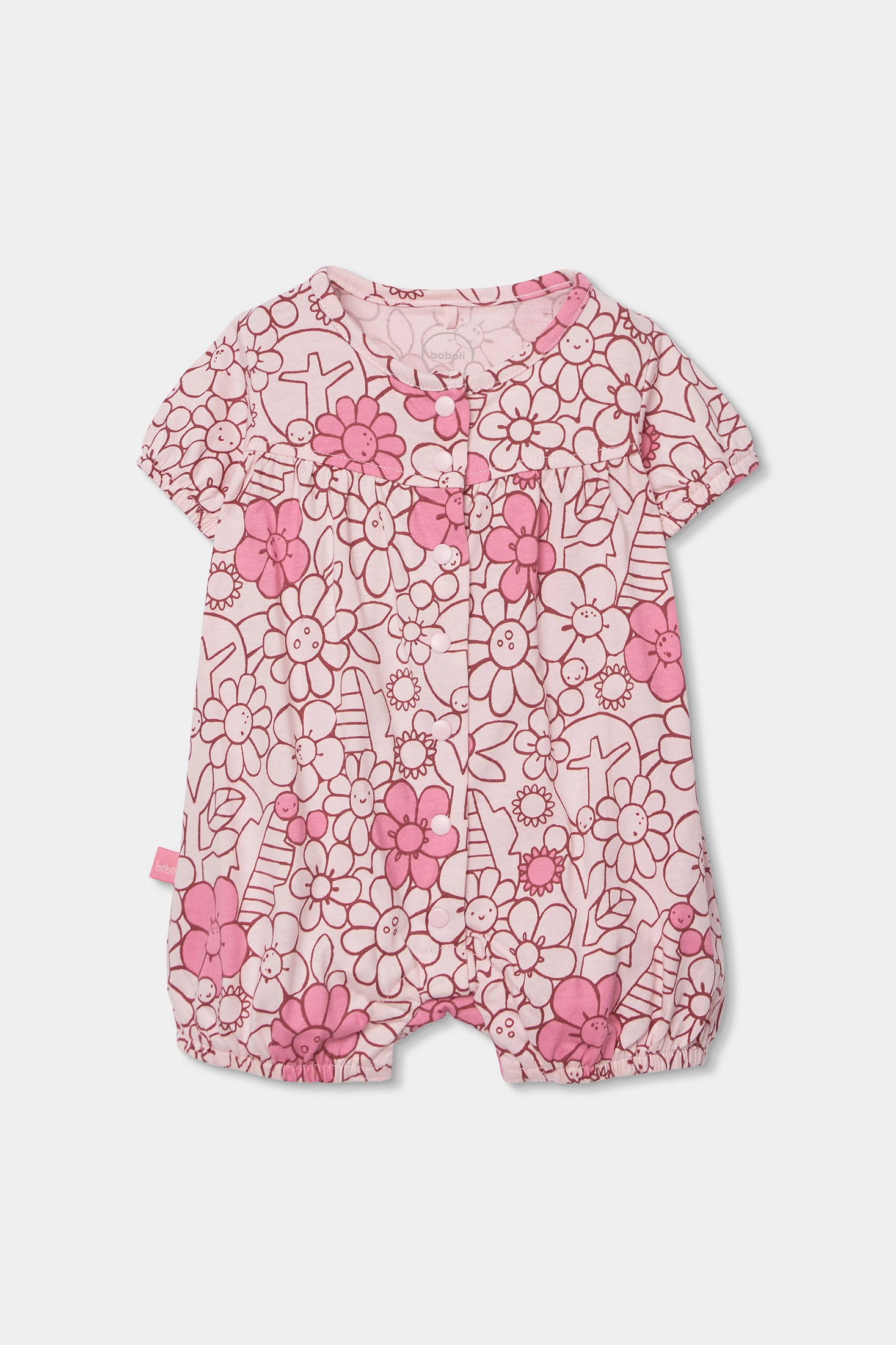Adorabile tutina lavorata a maglia con stampa floreale per bambina, realizzata in morbido cotone, ideale per le pelli delicate. Presenta un design in tonalità rosa che conferisce un tocco dolce e femminile. È dotata di bottoni frontali per facilitare il cambio d'abito. Disponibile in taglie da 0 mesi fino a 24. L'elastico nelle gambe aggiunge comfort e facilità di movimento, rendendo questa tutina un capo pratico per l'uso quotidiano del bambino.