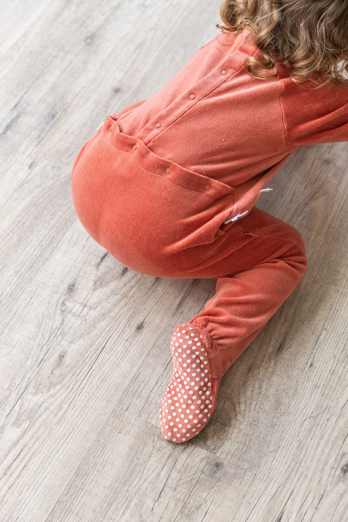 Tutina in velluto per neonati ideale per la stagione autunnale e invernale, offrendo calore e comfort grazie al suo tessuto morbido e accogliente. Si distingue per il suo attraente design in colore terra cotta con un incantevole motivo animale, che aggiunge un tocco giocoso. Le maniche lunghe e i piedi chiusi garantiscono che il neonato rimanga ben coperto in ogni momento. Disponibile in taglie da 0 mesi a 2 anni, questa tutina è un'opzione pratica e stilosa per il quotidiano o attività informali. Si abbina facilmente con accessori in toni terra o neutri per completare il look del piccolo.