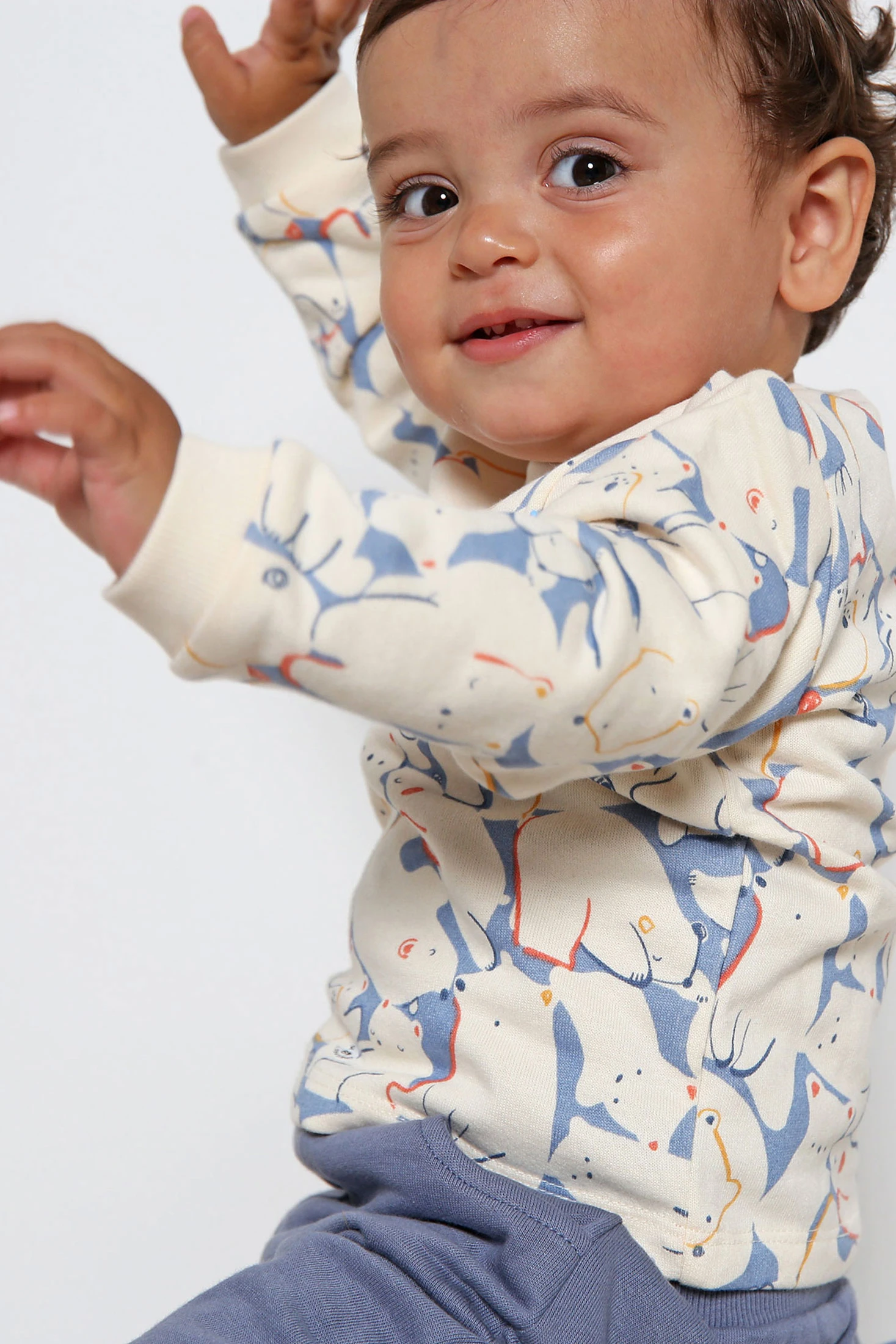 Set in maglia per bambino di colore blu con stampe di animali, progettato per mantenere i piccoli comodi e al caldo durante le stagioni più fredde. La parte superiore presenta un design divertente nei toni del blu chiaro e crema, mentre i pantaloni, in blu uniforme, completano il look. Realizzato in un materiale a maglia morbido al tatto, è ideale per la pelle sensibile dei bambini. Disponibile nelle taglie da 1 mese a 2 anni, questo set è una scelta pratica ed elegante per la quotidianità del tuo bambino.