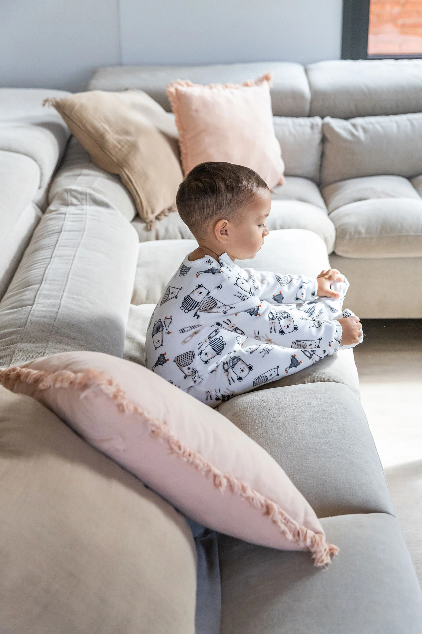 Pigiama neonato di maglia animali bianco