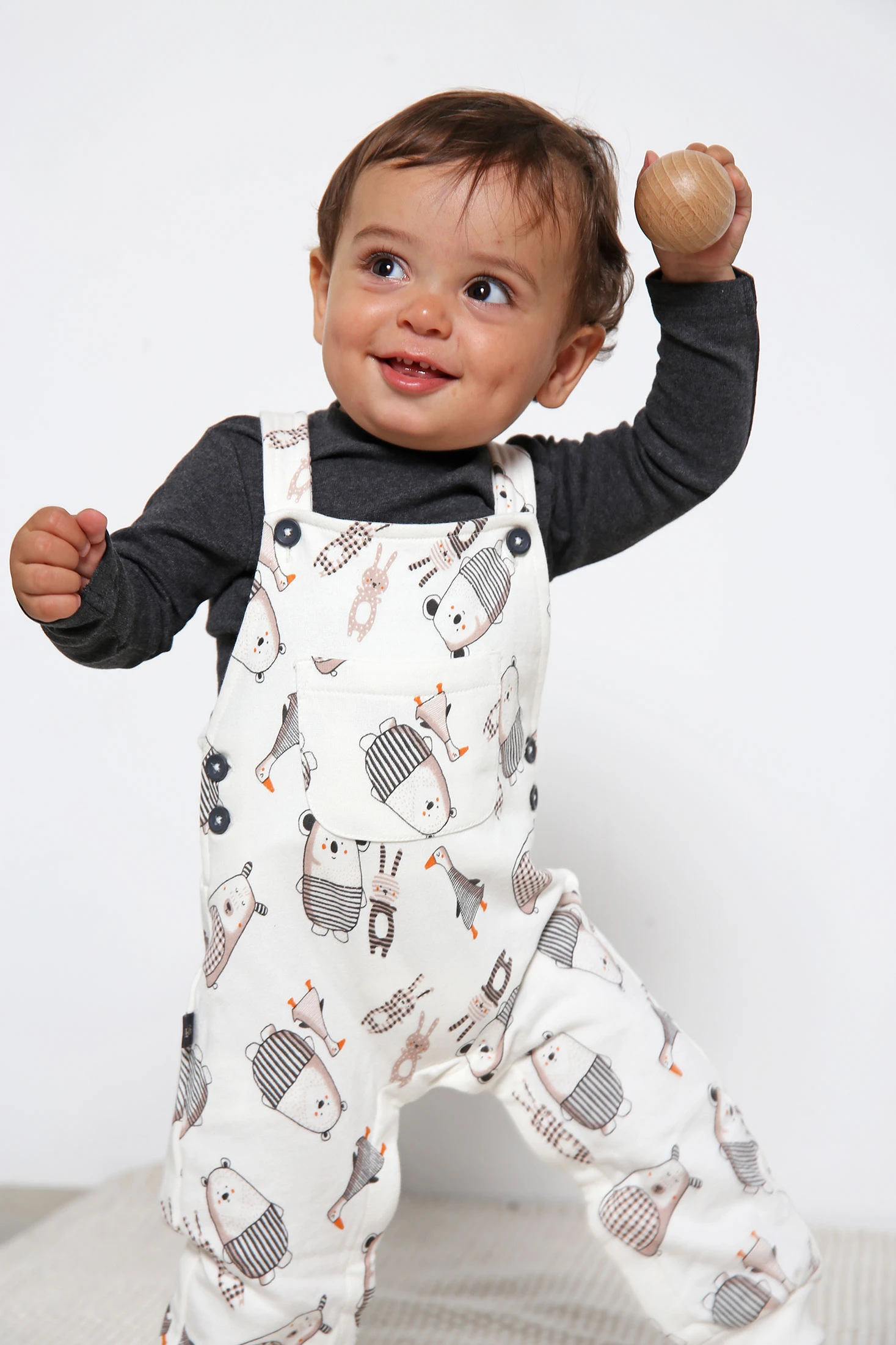 Completo in maglia per bebé di colore grigio, ideale per le fresche giornate d'autunno e inverno. Include un comodo pagliaccetto con un incantevole stampa di animali in toni neutri e bretelle incrociate con bottoni, che facilitano il cambio d'abito. La maglietta, a maniche lunghe e realizzata in morbido tessuto grigio scuro, offre calore e comfort. Disponibile in taglie da 1 mese a 24 mesi, questo completo cresce insieme al bambino, garantendo stile e praticità. Combinalo con sneakers per un look casual o con stivaletti per un tocco più elegante.