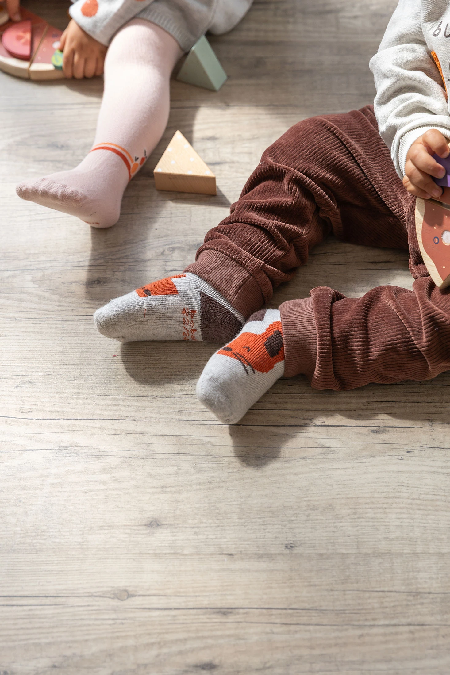 Calzini per bebè in colore beige con disegni di animali e sottili righe, perfetti per tenere i piedini del tuo piccolo al caldo durante l'inverno. Sono realizzati con materiali morbidi e caldi, garantendo comodità senza comprimere il piede delicato del bebè. Disponibili in varie taglie, si adattano comodamente per accompagnare la sua crescita. Ideali da abbinare a outfit sia casual che eleganti, aggiungono un tocco di stile e dolcezza a qualsiasi completo.