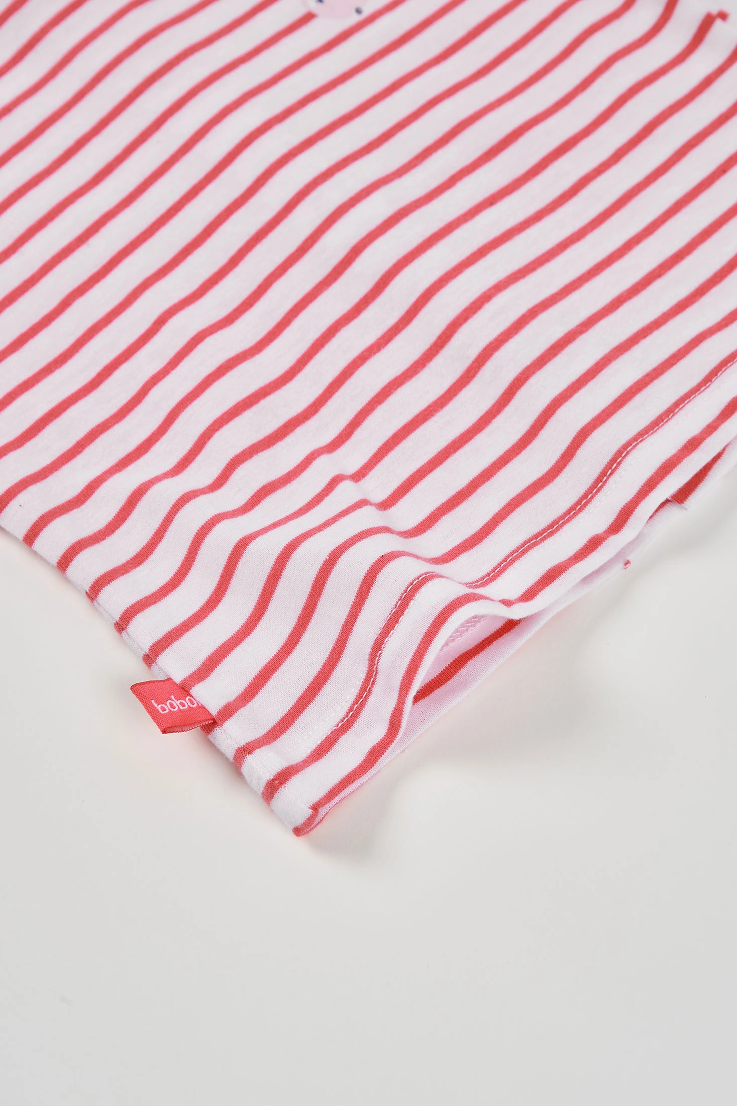 Maglietta in cotone per bambina, presenta un design a righe nei toni del bianco e rosa intenso, con una piccola decorazione in vari colori che aggiunge un tocco divertente. Realizzata in tessuto morbido, è perfetta per il comfort dei più piccoli. Disponibile in taglie da 1 mese a 24 mesi. Con collo rotondo e maniche lunghe, è adatta a diverse stagioni. Il suo design pratico la rende un'opzione versatile per tutti i giorni.
