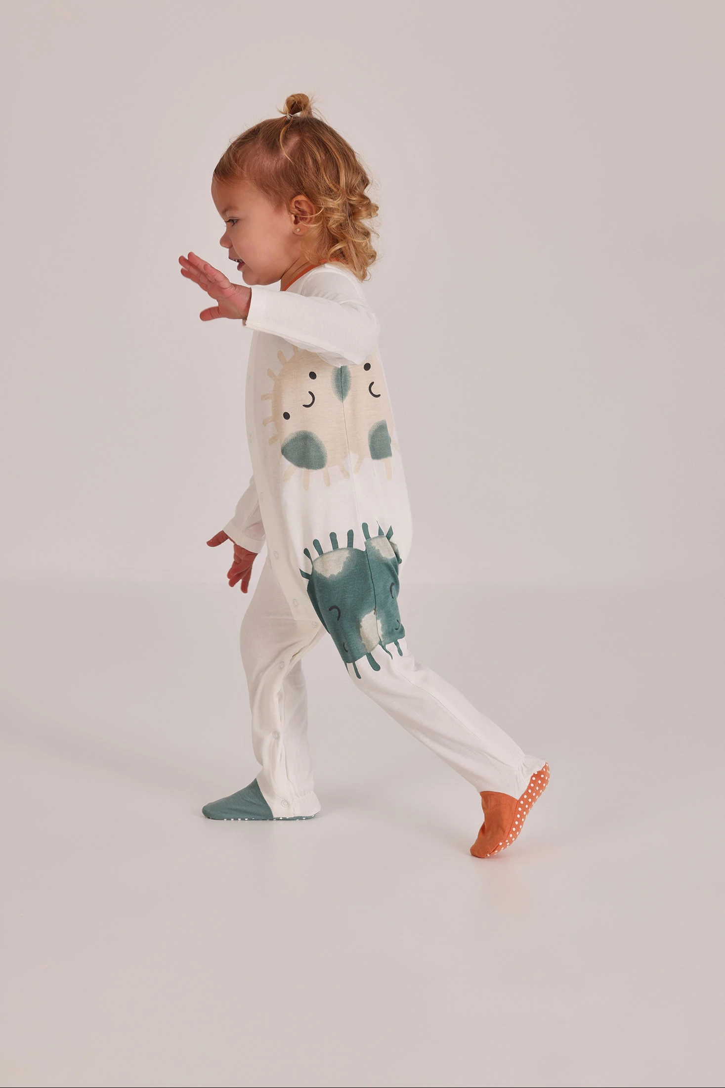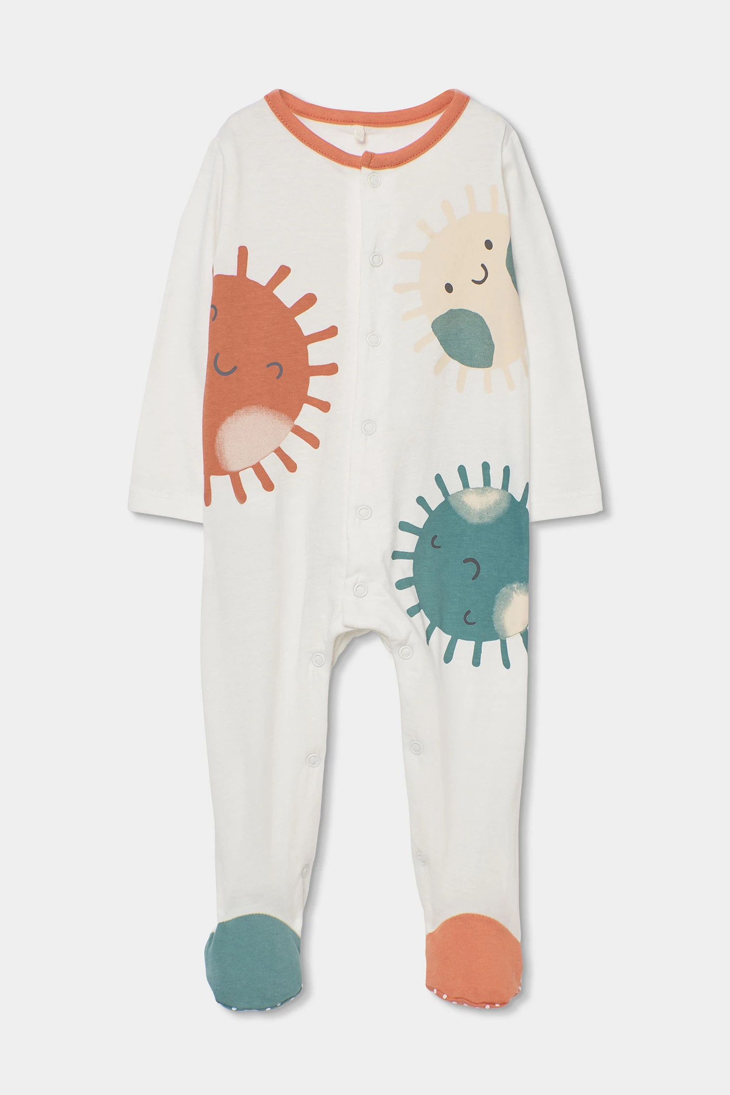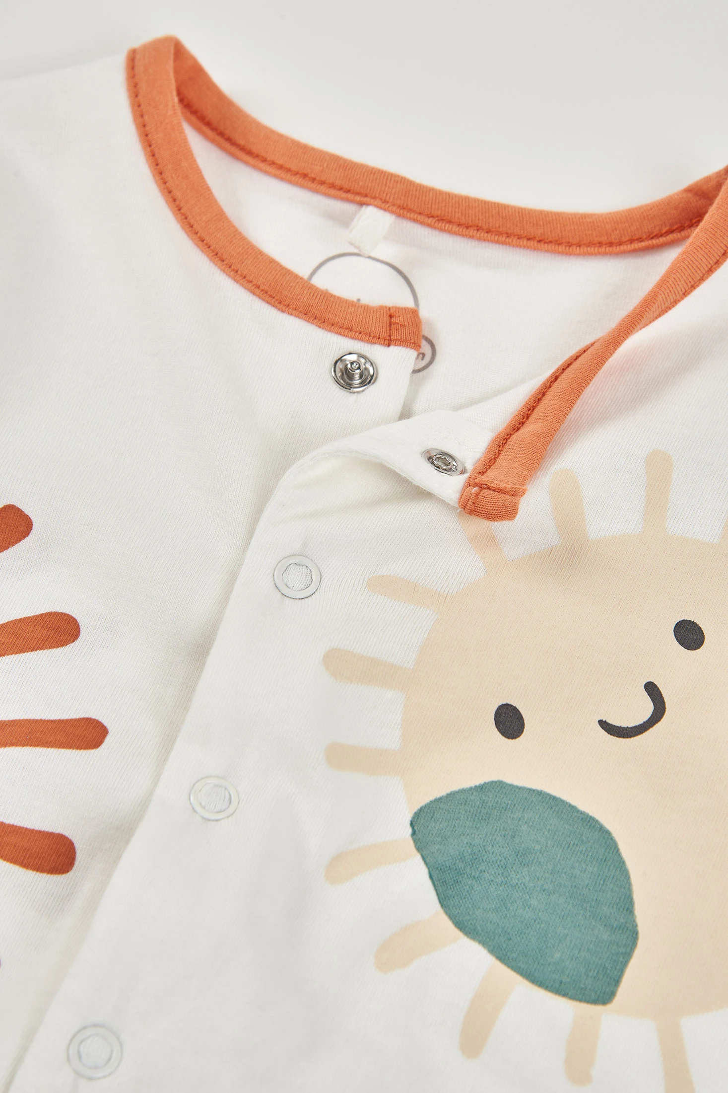 Tutina in cotone bianco per bambino, perfetta per i primi mesi. Presenta un design divertente con animali sorridenti in tonalità arancioni e verdi, che aggiunge un tocco allegro. Con maniche lunghe e piedi coperti. Disponibile in taglie da 0 a 24 mesi, assicura una vestibilità ideale man mano che il tuo piccolo cresce. Il suo tessuto morbido garantisce comfort e la chiusura frontale facilita il cambio del pannolino. Ideale per l'uso quotidiano durante tutto l'anno.
