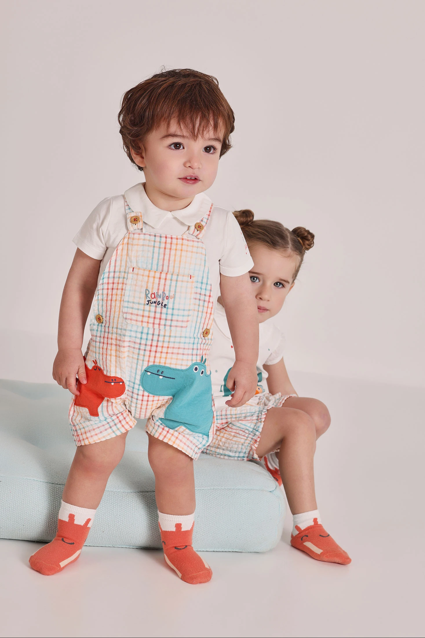 Completo con salopette per neonati realizzato in morbido cotone, ideale per la pelle delicata dei più piccoli. Presenta un design a quadri in tonalità pastello e divertenti disegni di animali sulla parte anteriore. È perfetto per neonati da 1 mese a 24 mesi. Il suo stile funzionale include bretelle regolabili con bottoni e una tasca decorativa frontale sulla salopette e maglietta bianca. Si abbina facilmente per un look incantevole in qualsiasi occasione.