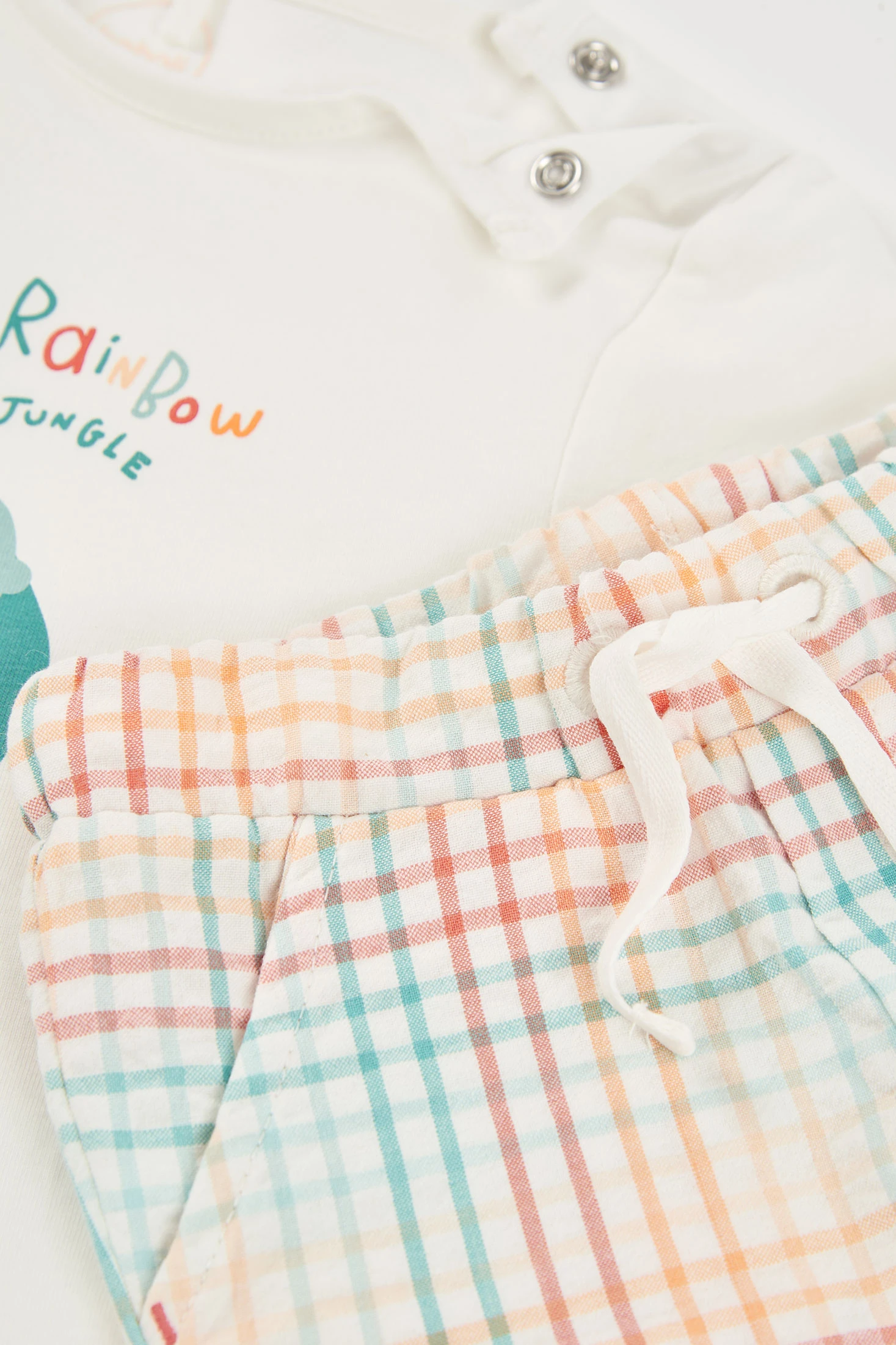 Set di maglietta di cotone bianca, perfetta per i neonati nei loro primi anni. Progettata con divertenti disegni di animali colorati, è ideale per un look allegro. Il materiale in cotone garantisce comfort e morbidezza, prendendosi cura della delicata pelle del bambino. Disponibile in taglie da 1 mese a 24 mesi, si adatta alla crescita del bambino. I suoi colori versatili e il design affascinante lo rendono un'ottima scelta per tutti i giorni.