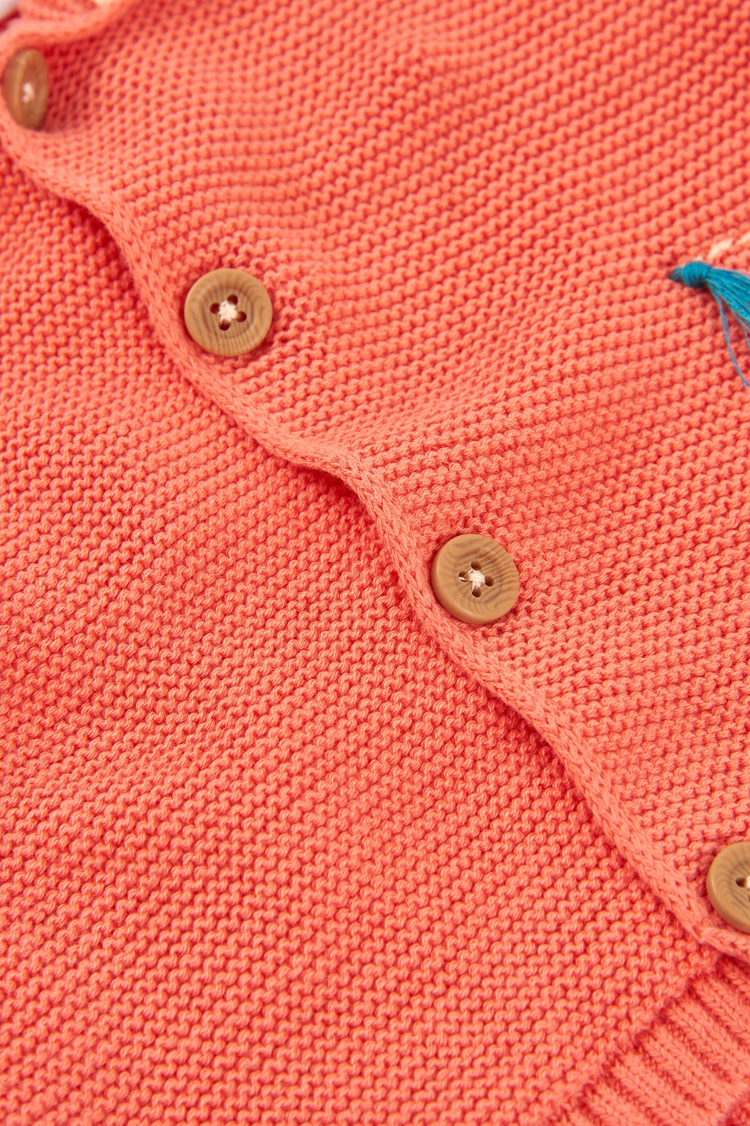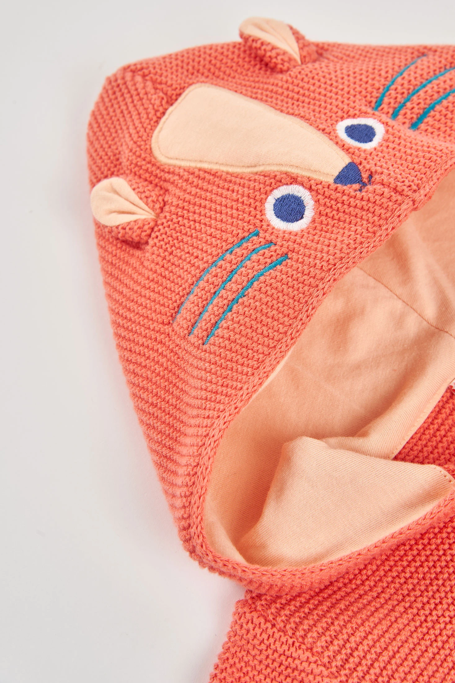 Giacca di maglia arancione per bebè, ideale per le età da 1 a 24 mesi. Il suo tessuto morbido e traspirante è perfetto per mantenere il tuo piccolo comodo e caldo. Presenta un colore vibrante che aggiunge un tocco allegro, con dettagli ricamati di animali che conferiscono un fascino speciale. Include un cappuccio per una maggiore protezione nei giorni più freschi d'estate e primavera e una chiusura frontale a bottoni che facilita l'uso. Articolo versatile e elegante, perfetto per abbinare con altri completi, apportando calore e stile all'abbigliamento quotidiano del tuo beb