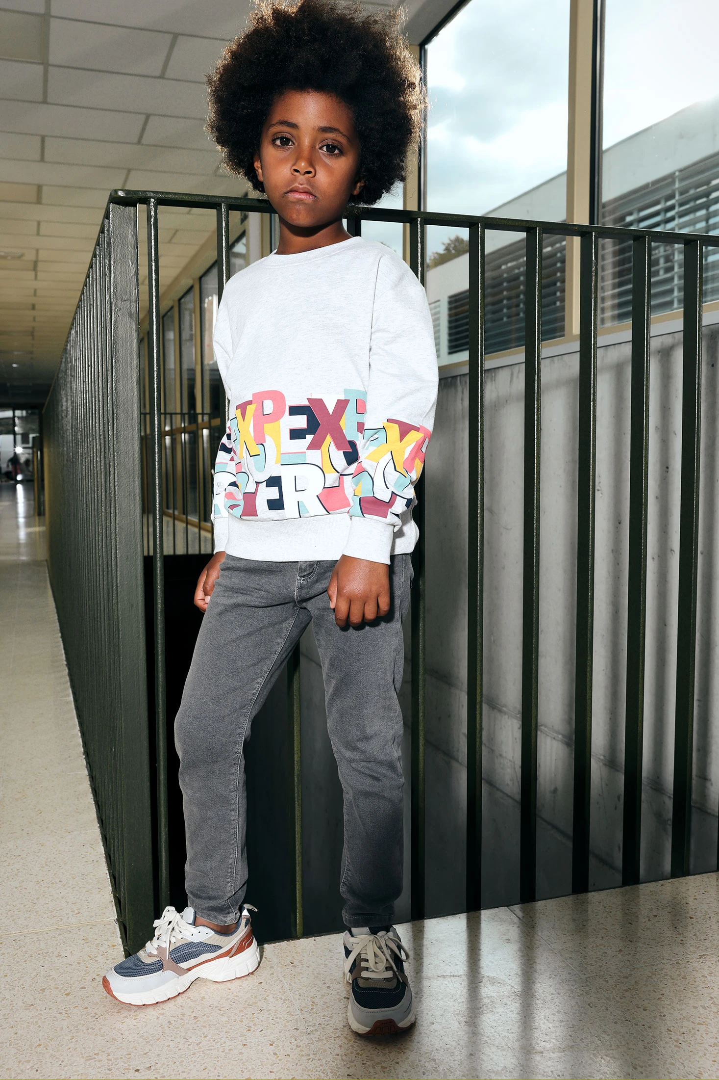 Pantaloni elasticizzati in denim grigio per bambino