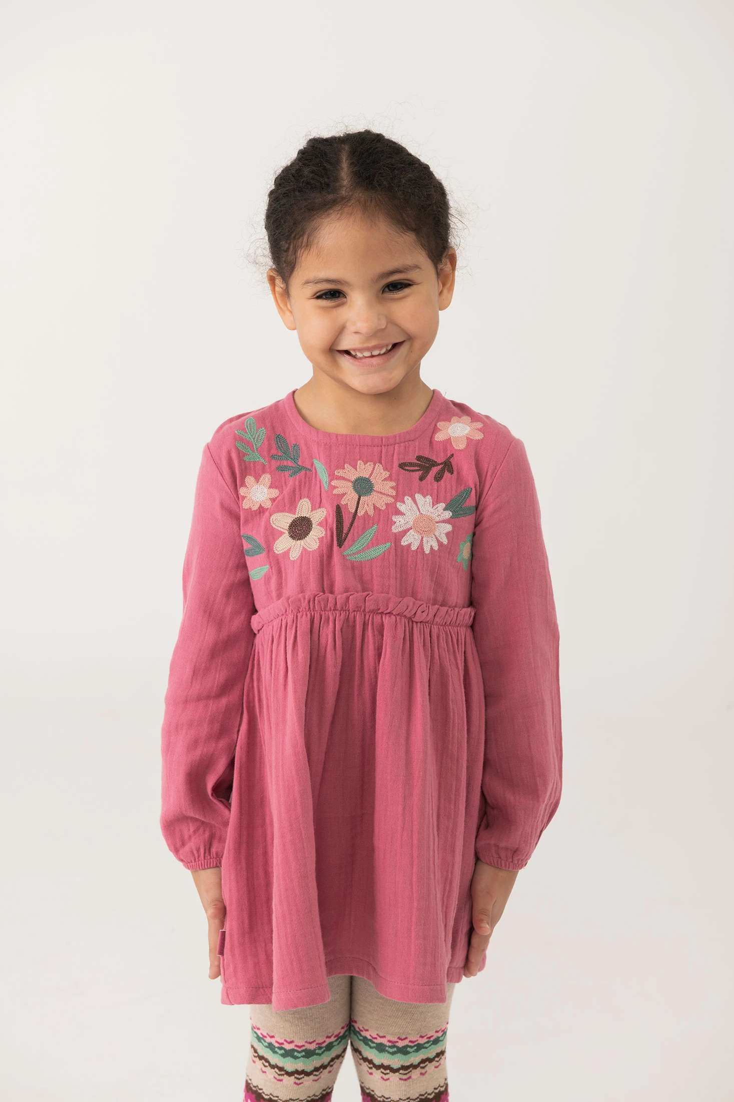 Abito con stampa floreale in colore fragola, ideale per l'autunno, offre freschezza e comfort alle più piccole. Realizzato in mussola di alta qualità, la sua incantevole stampa floreale e il suo colore rosa tenue offrono un look delicato e affascinante. Perfetto per occasioni speciali o per un uso quotidiano elegante. Disponibile in taglie che vanno dai 12 mesi ai 10 anni, è un complemento versatile nel guardaroba infantile. Completa l'outfit con collant o scarpette leggere per uno stile fresco e attuale.