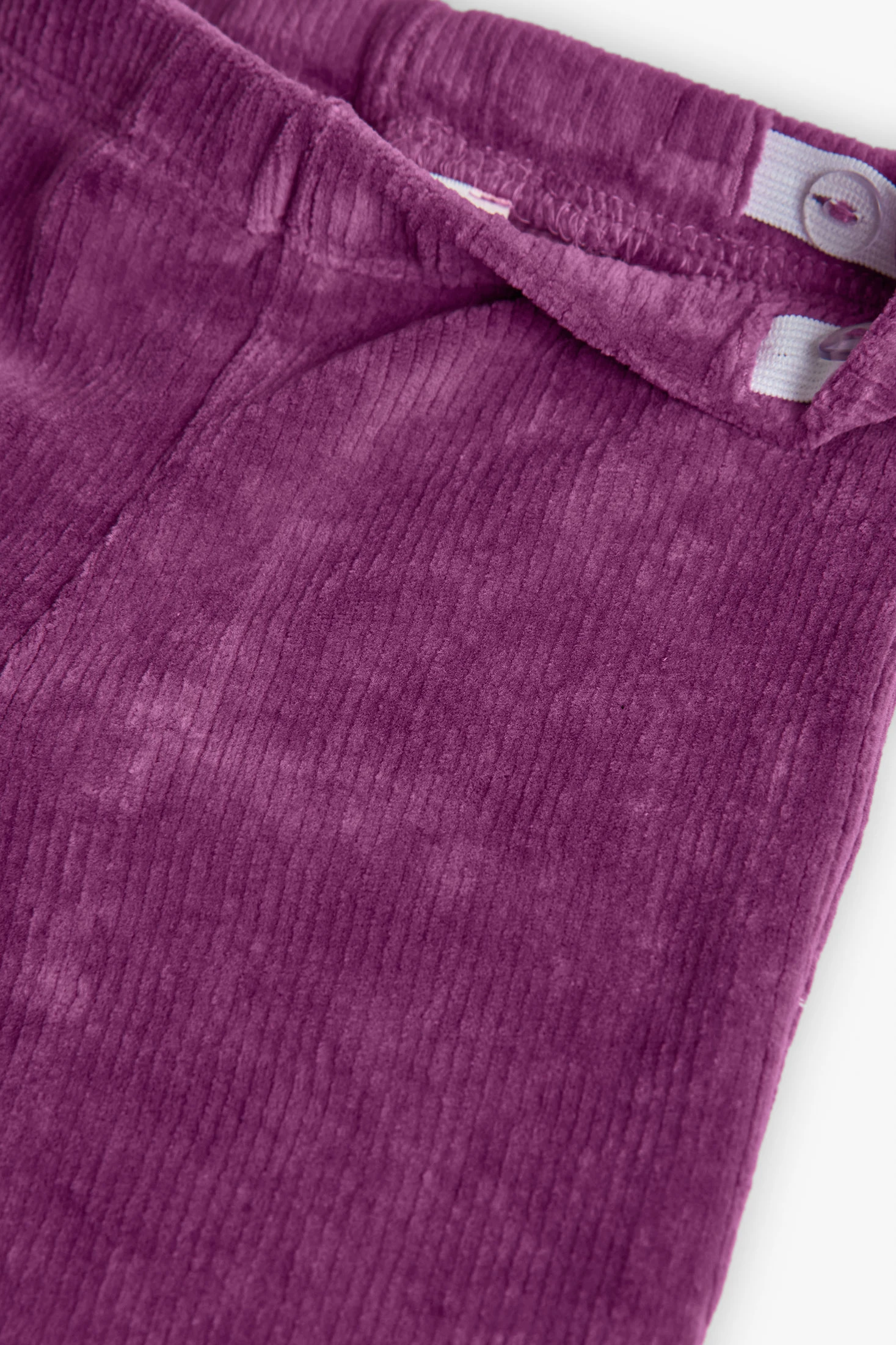 Pantalone in velluto a coste di maglia per bambina in colore lilla, perfetto per le stagioni autunnali e invernali grazie al suo tessuto caldo e resistente. Realizzato in morbido velluto a coste, garantisce comodità e libertà di movimento per i più piccoli. Disponibile nelle taglie da 12 mesi a 10 anni, questo pantalone è un'opzione versatile ed elegante che si abbina perfettamente con maglioni o magliette in toni neutri o stampati. Il suo design semplice e attraente lo rende un elemento essenziale nel guardaroba infantile.