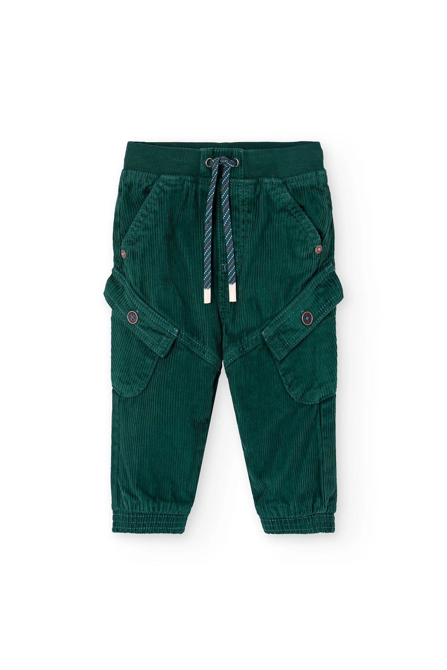 Pantaloni in velluto a coste verde per bambino, ideali per le stagioni autunnali e invernali grazie alla loro realizzazione in morbido cotone che fornisce calore e comfort. Di un vibrante colore verde, questi pantaloni offrono uno stile moderno e versatile, funzionando bene abbinati a magliette, maglioni o giacche. La vita elastica regolabile garantisce una vestibilità precisa e confortevole, facilitando la libertà di movimento. Pratiche tasche laterali lo rendono una scelta funzionale e sofisticata per i più piccoli. Disponibile in taglie da 12 mesi a 10 anni, è un capo indispensabile in qualsiasi guardar