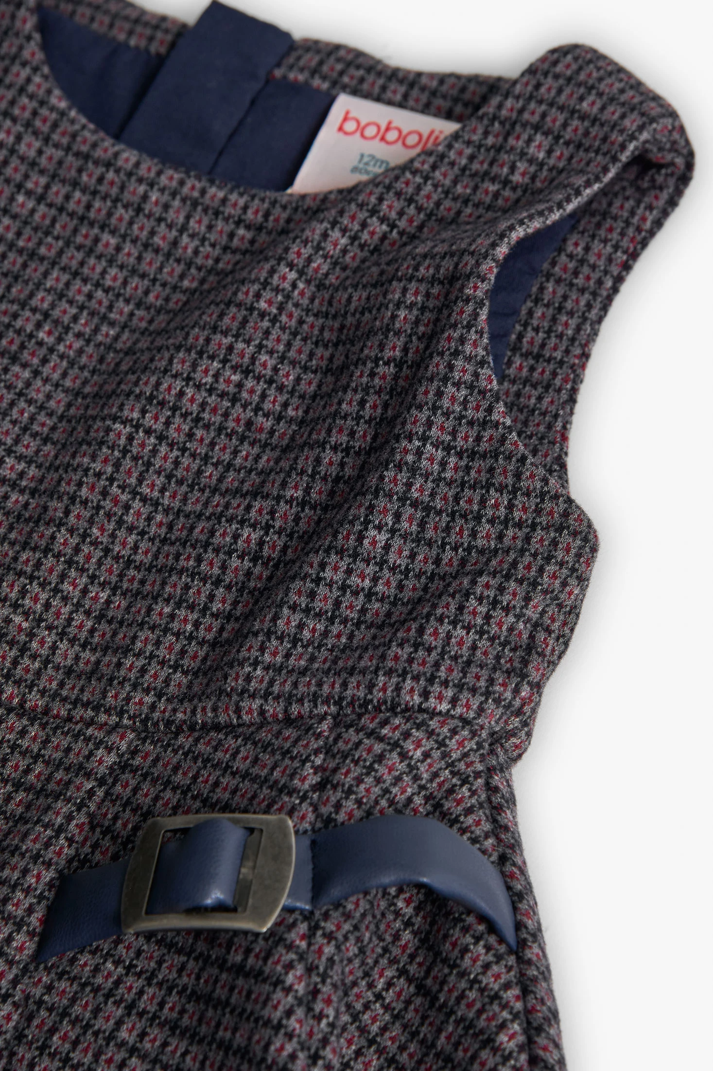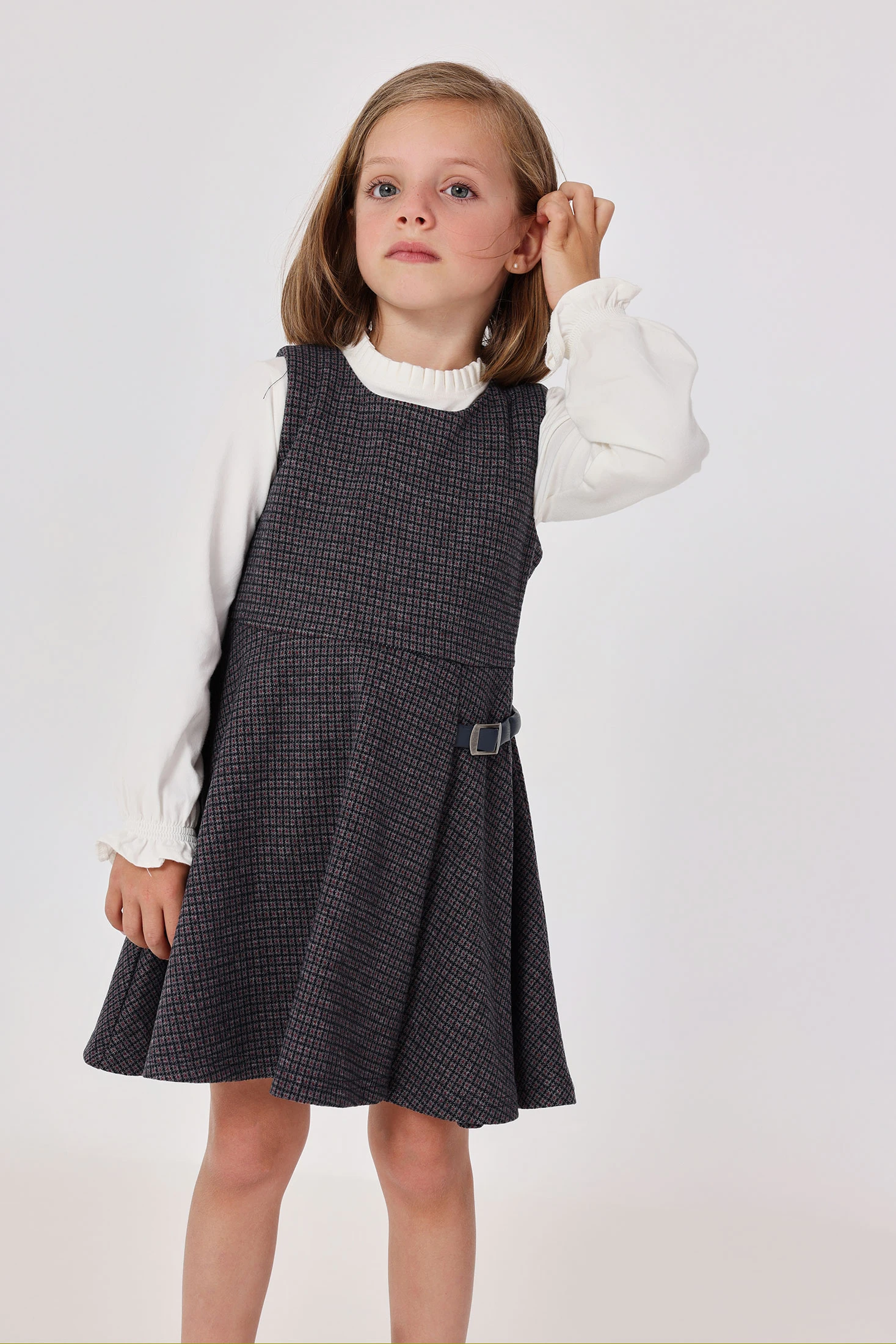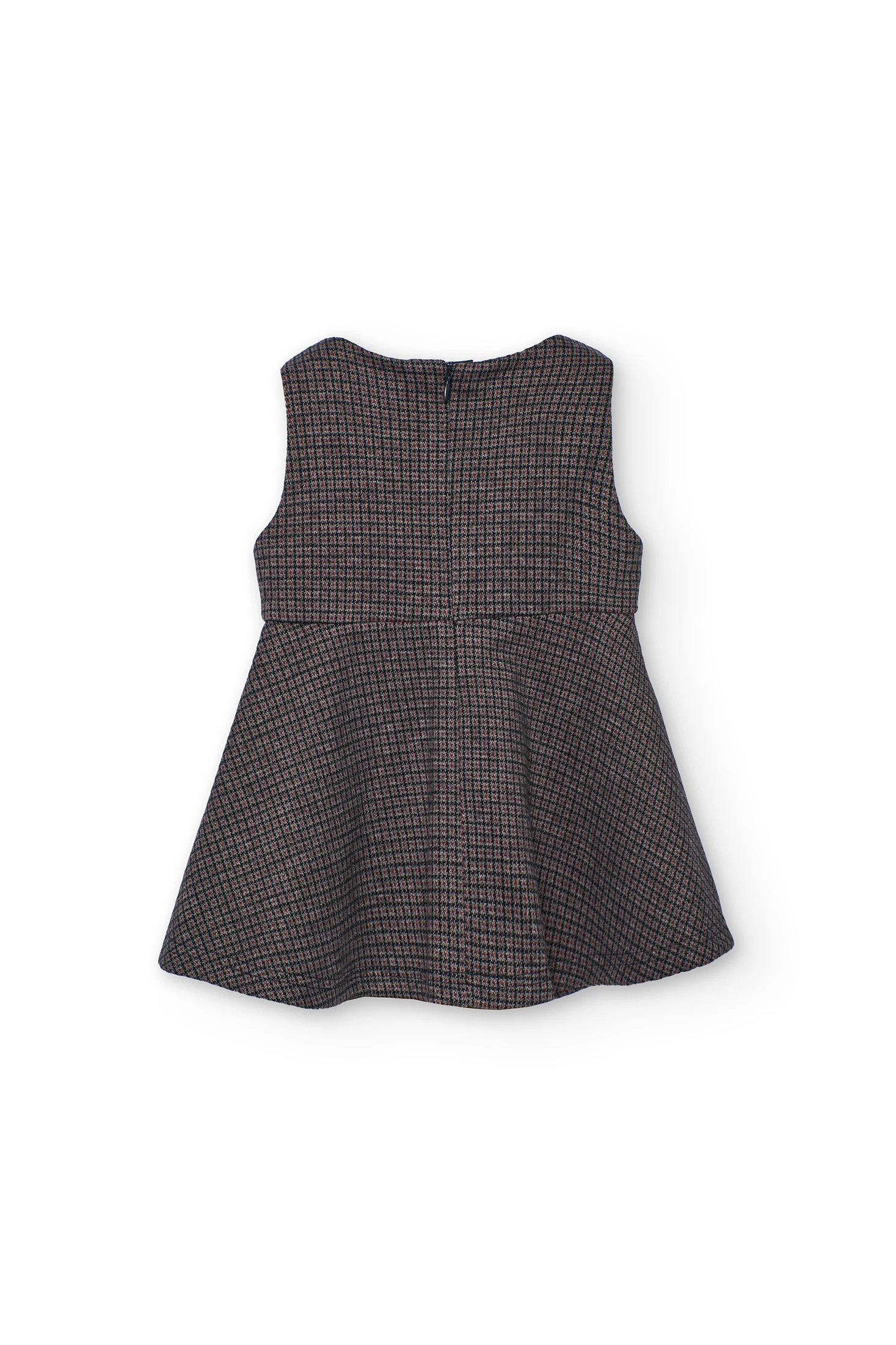 Vestito scamiciato per bambina a quadri grigi in maglia