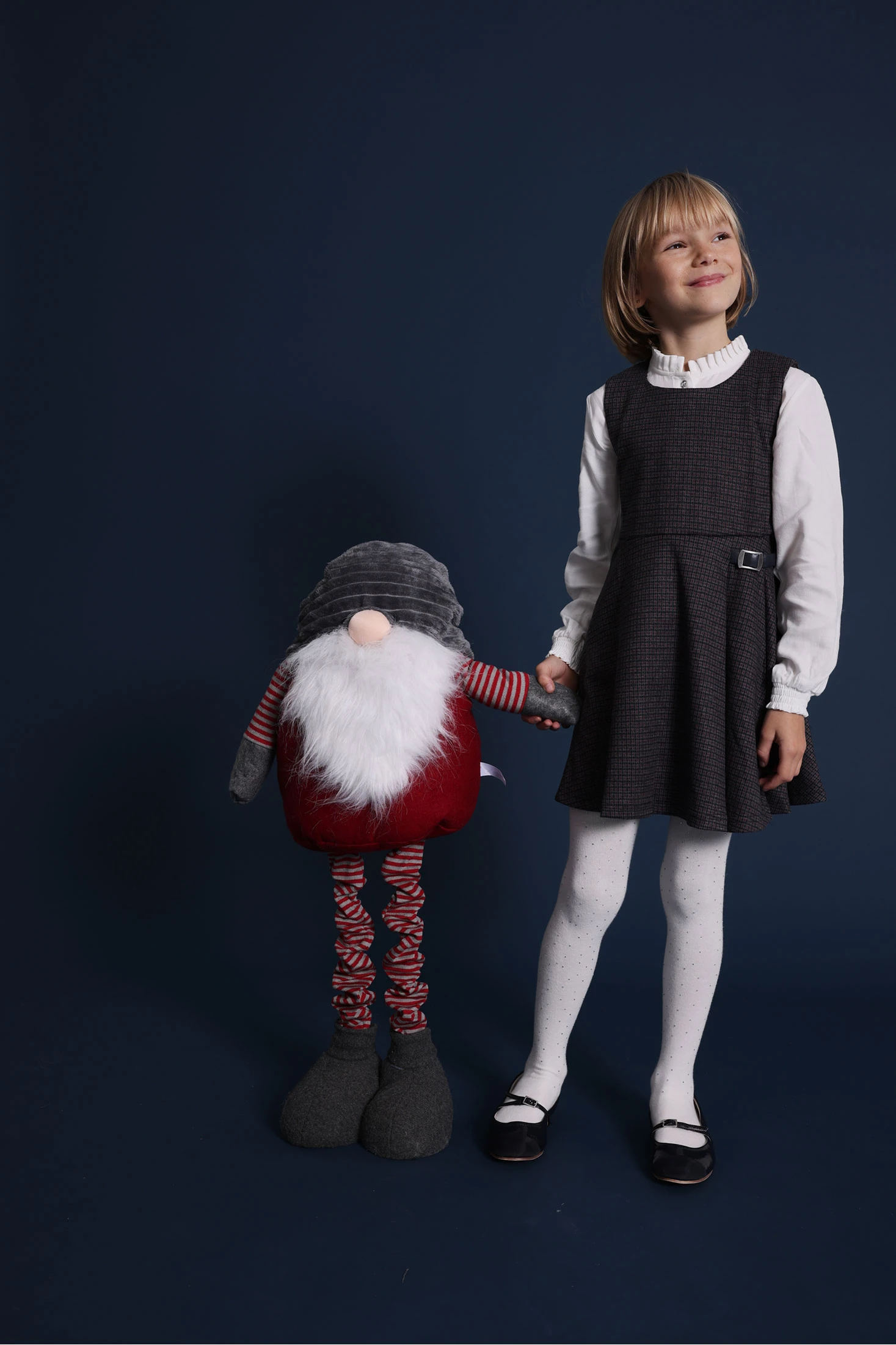 Gonna-pantalone in maglia con quadri grigi, un capo elegante e versatile, perfetto per le stagioni autunnali e invernali. Realizzato in un tessuto morbido, garantisce comfort senza perdere stile. Ideale per occasioni speciali o un look chic quotidiano, è disponibile in taglie da 12 mesi a 10 anni. Si abbina facilmente a bluse a colori solidi per ottenere un insieme raffinato e completo.