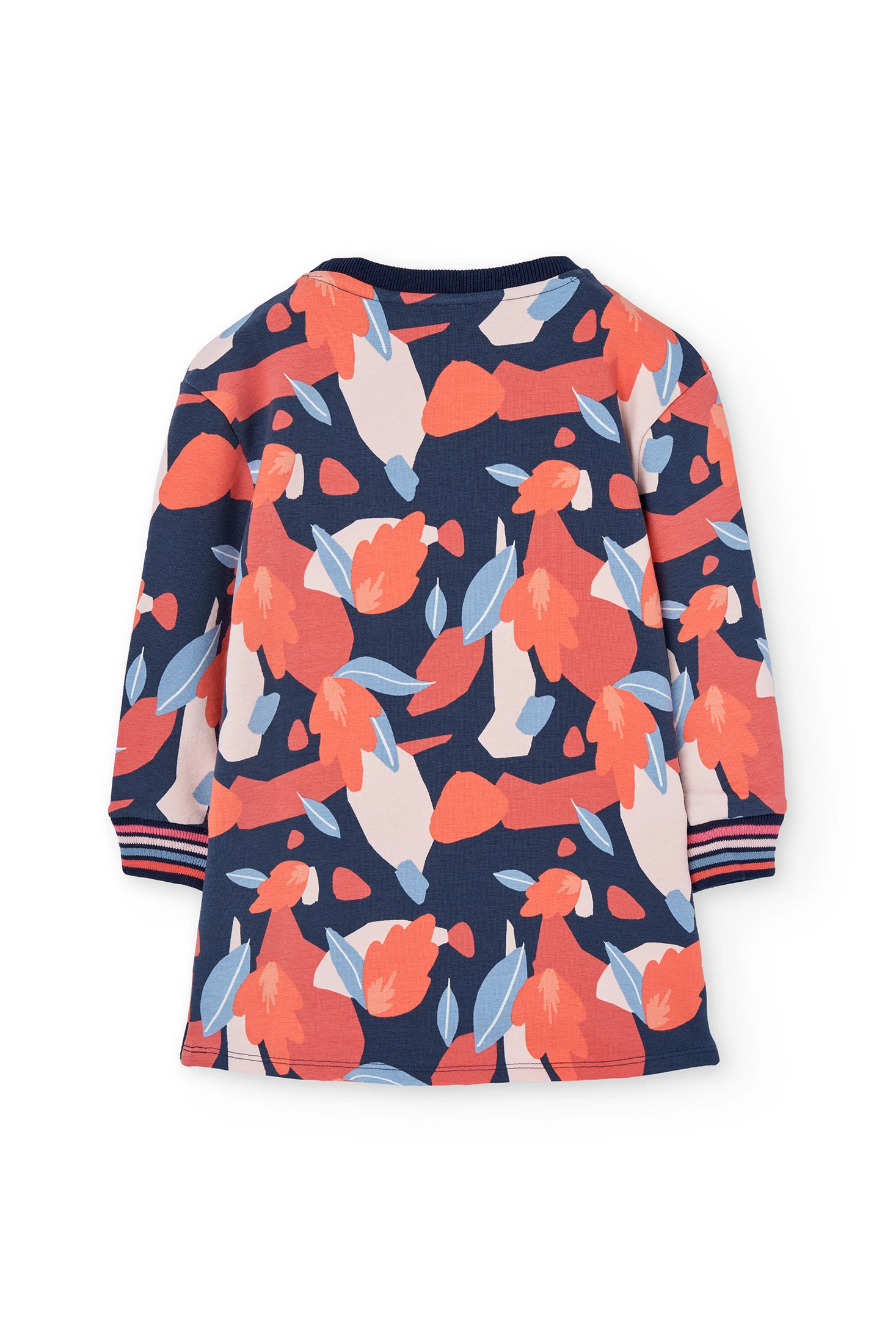 Vestito in felpa per bambina con incantevole stampa floreale in tonalità blu, ideale per le stagioni autunnali e invernali. Realizzato con un tessuto di felpa morbido, offre calore e comfort, perfetti per ogni occasione. Progettato con un collo rotondo e maniche lunghe, assicura una vestibilità comoda ed elegante. Disponibile in taglie da 2 a 14 anni, può essere facilmente abbinato a calze o collant per un look completo e moderno nei giorni più freddi. Pensato per mamme e papà che apprezzano lo stile e la praticità nell'abbigliamento quotidiano delle loro figlie.