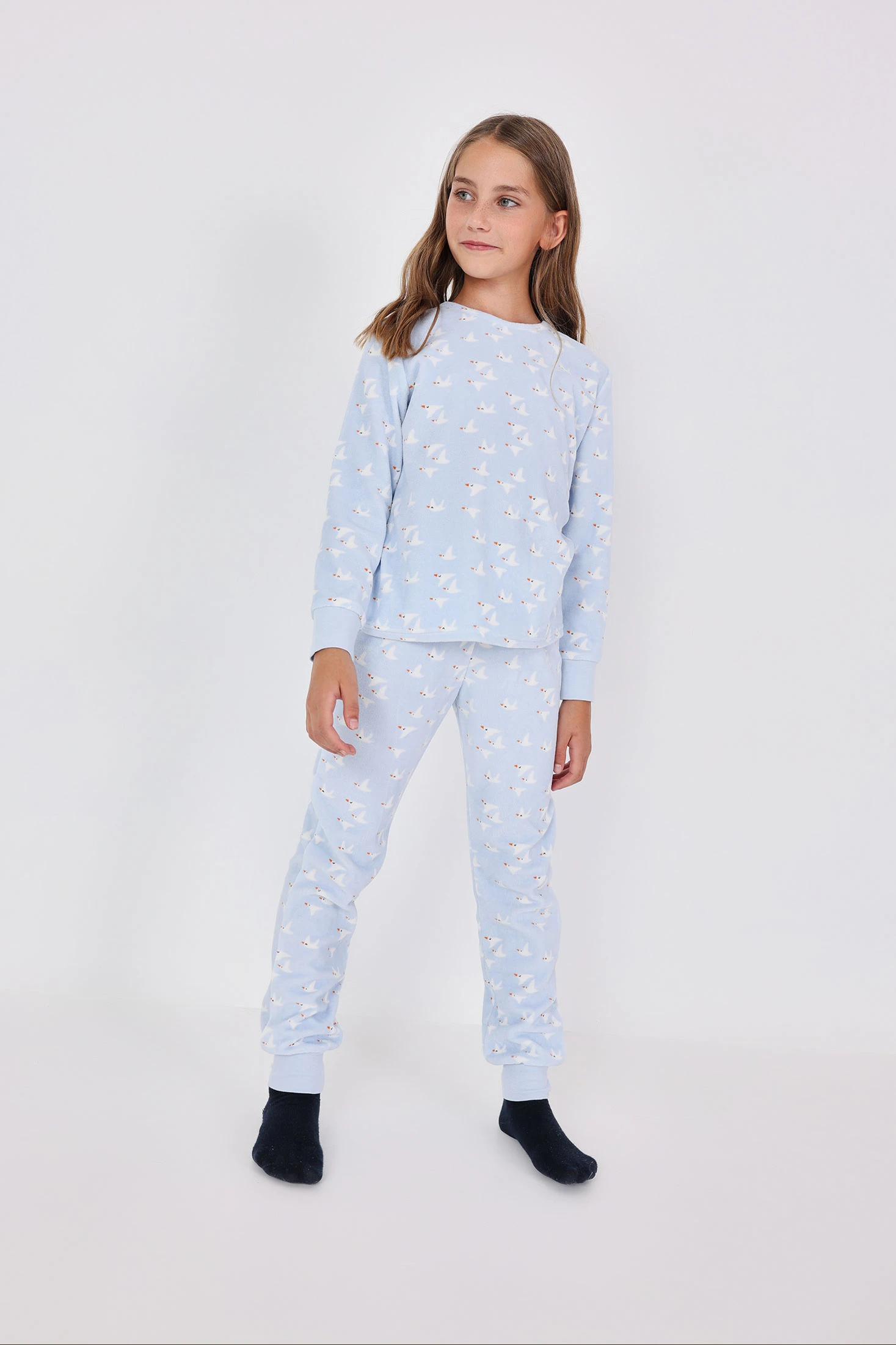 Pigiama bambina in velluto gabbiano azzurro cielo